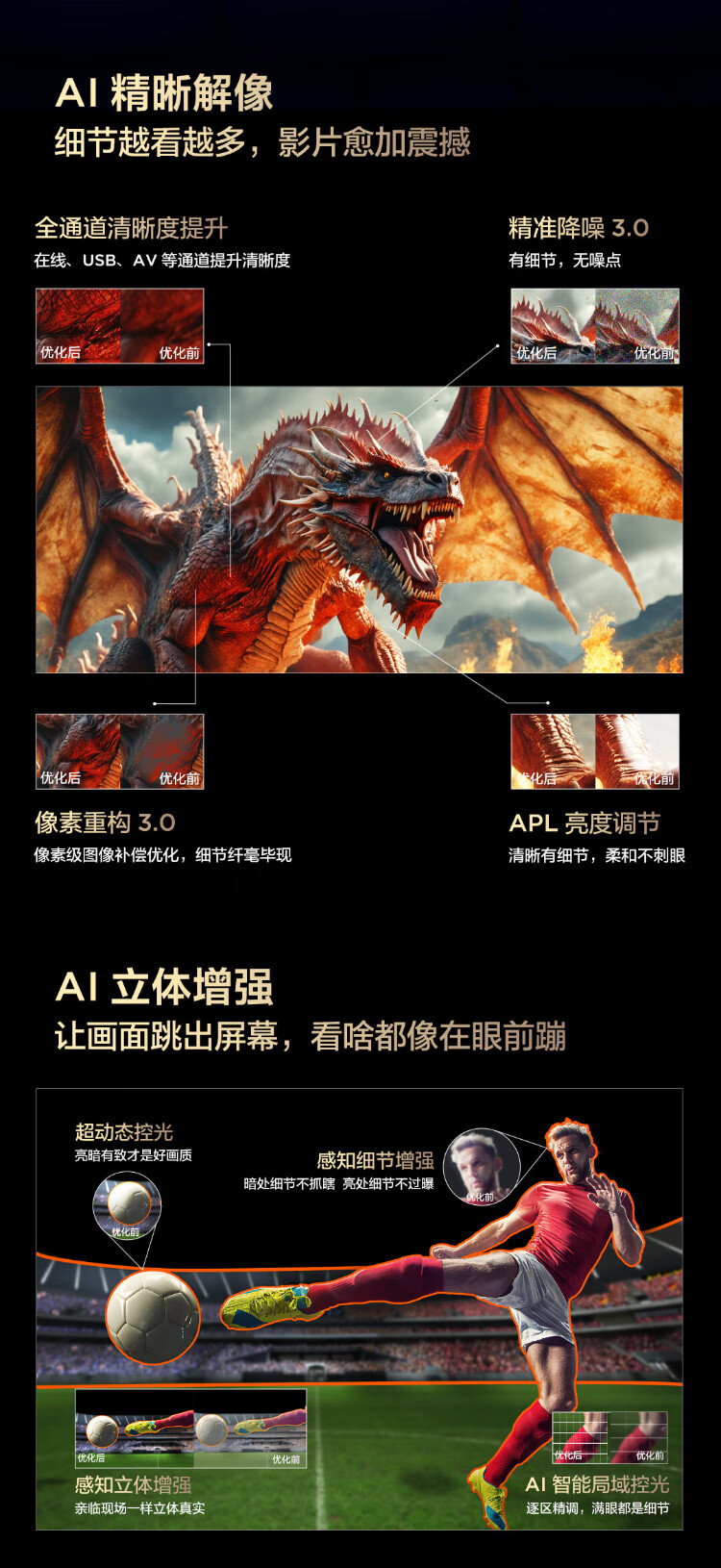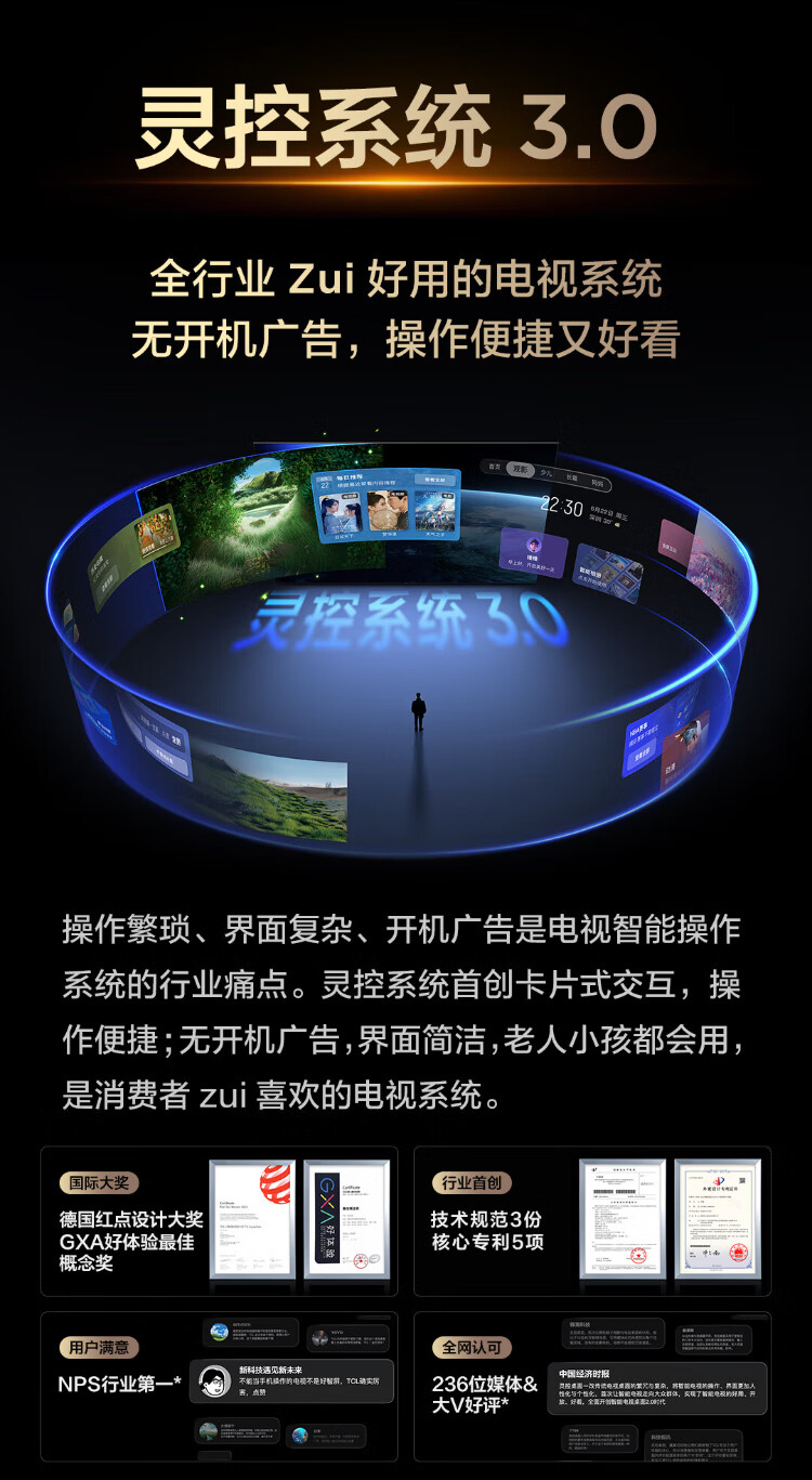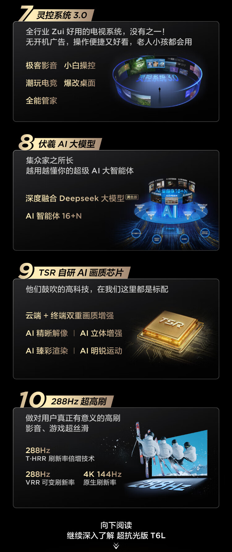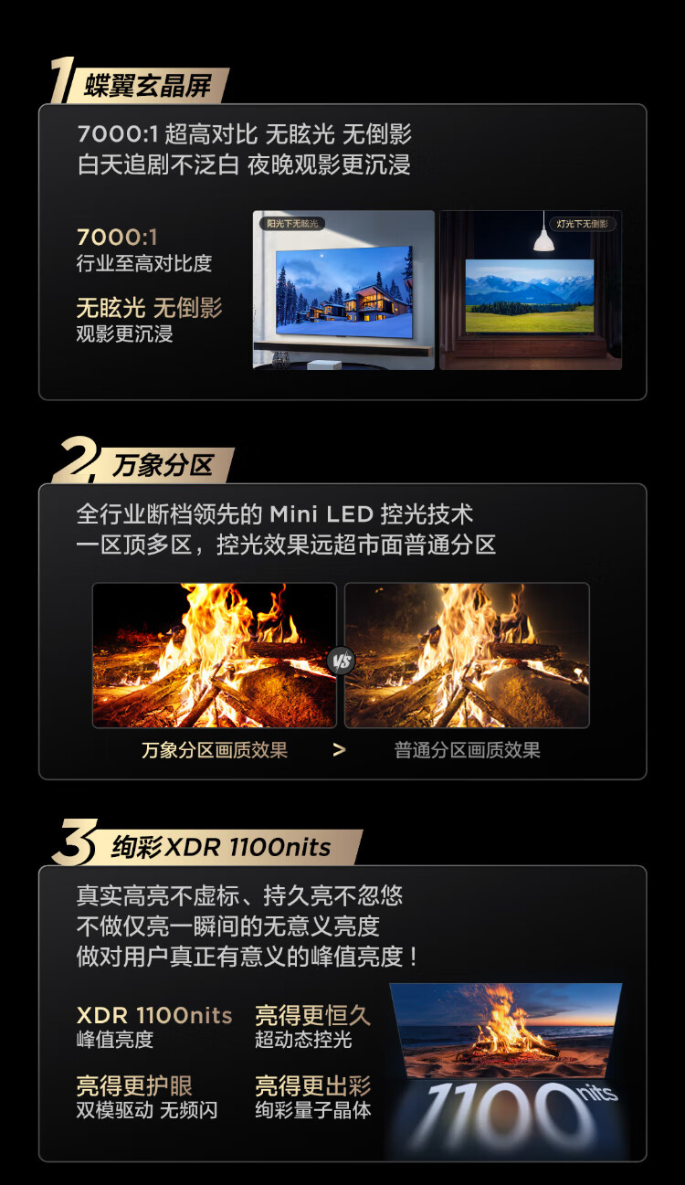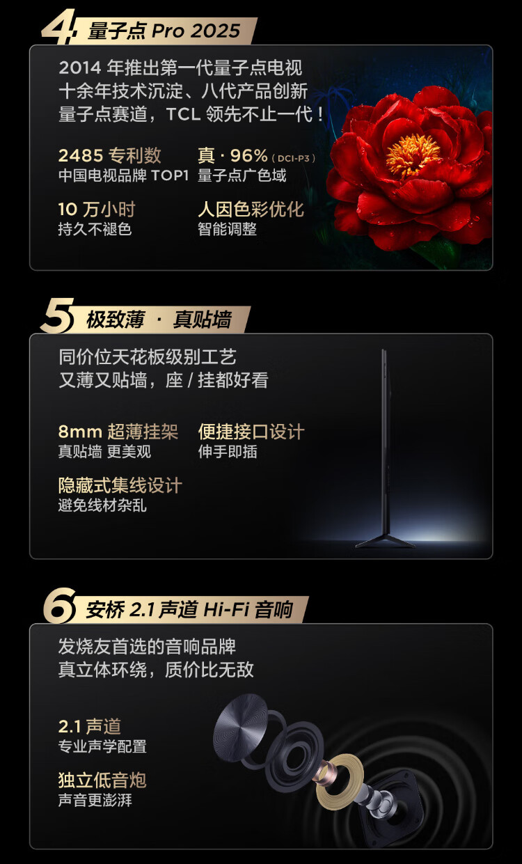 TCL TV 65T6L 65-inch QD-Mini LED Vientiane Partition Quantum Dot Colorful XDR 1100nits DeepSeek AI TV National Subsidy
