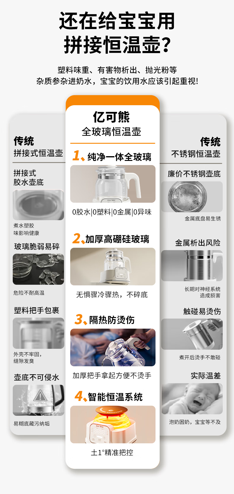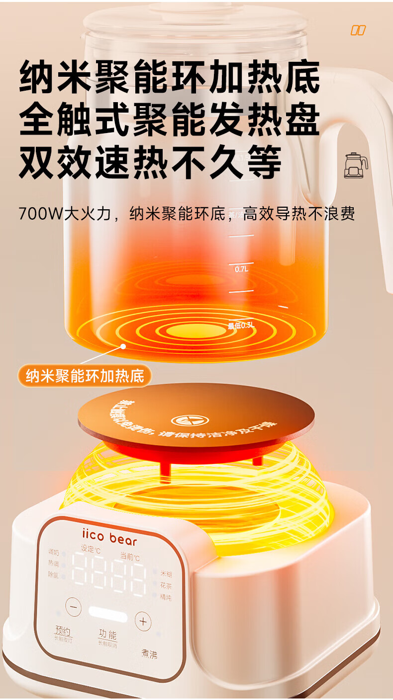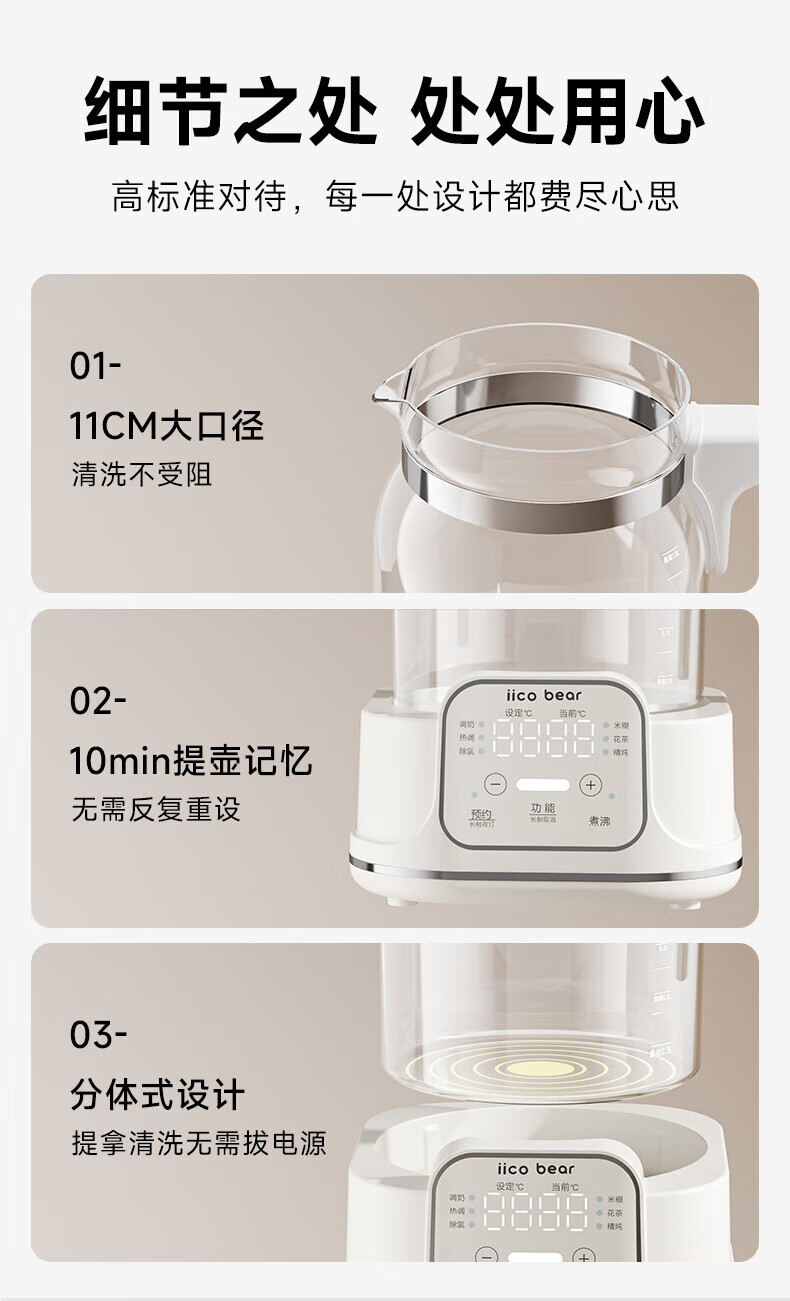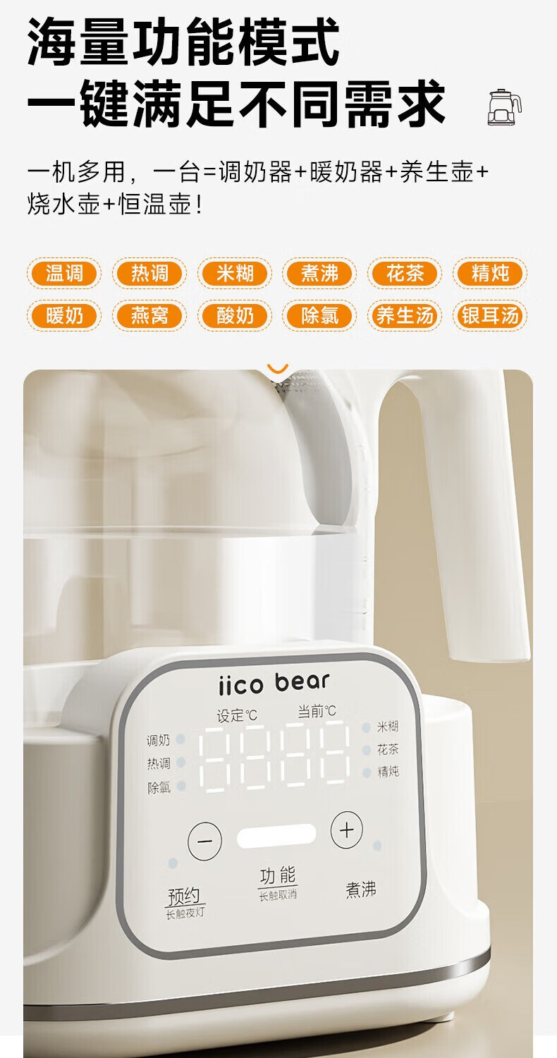 Iicobear all-glass thermostatic kettle thermostatic kettle baby warm milk milk mixer warm milk boiling water kettle