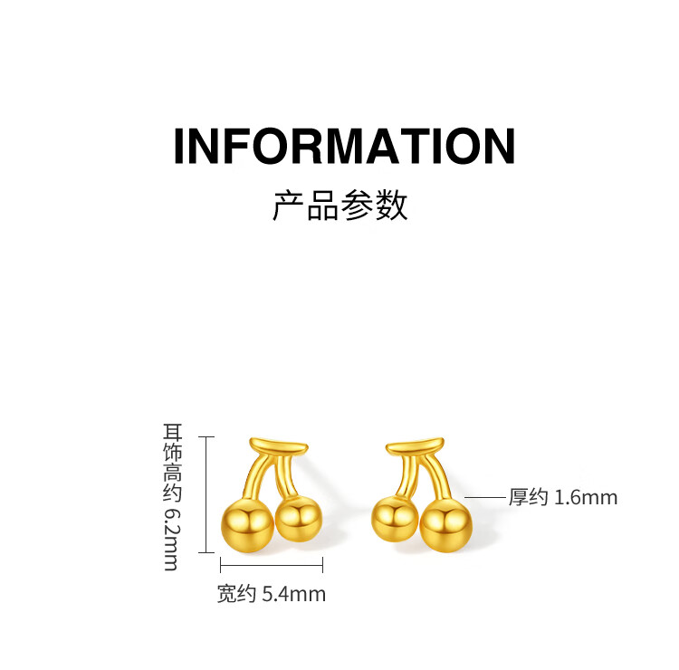 Saturday Fortune Cherry Gold Earrings Women's Football Gold Earrings Birthday Gift Price A0915205 One Pair Approximately 0.76g