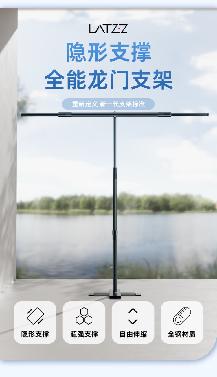 Leitz photography background stand 2.4*2 invisible fully retractable T-shaped stand live broadcast green screen cutout photo background cloth alloy studio equipment shooting bold portable stand