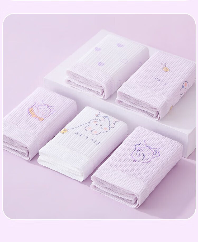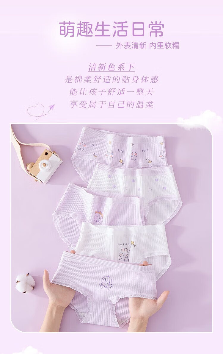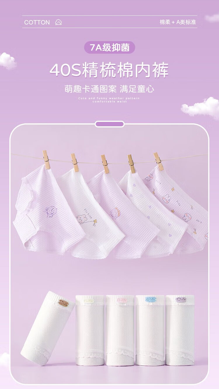 Langsha children's underwear for girls in the developmental period 7A antibacterial cartoon briefs five-pack white 140