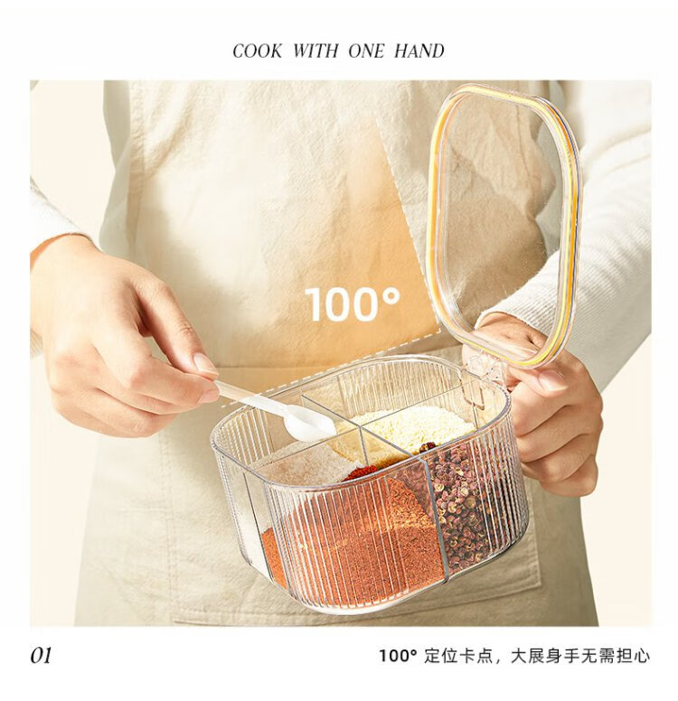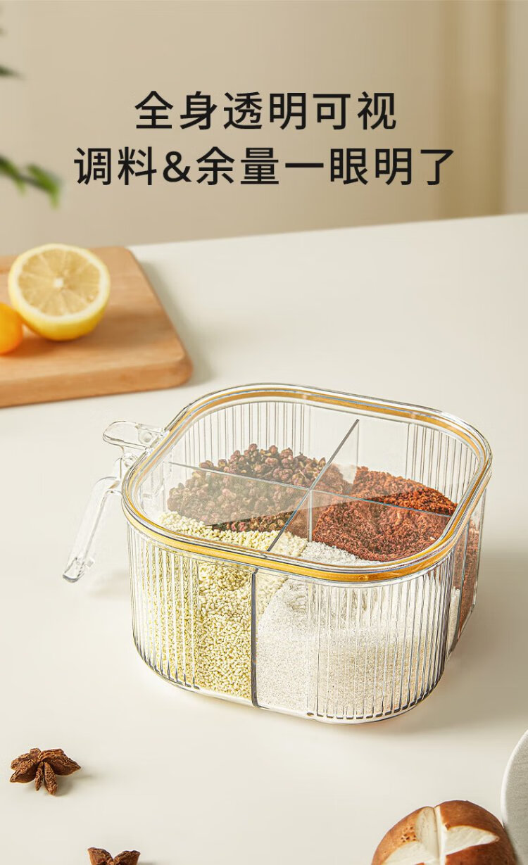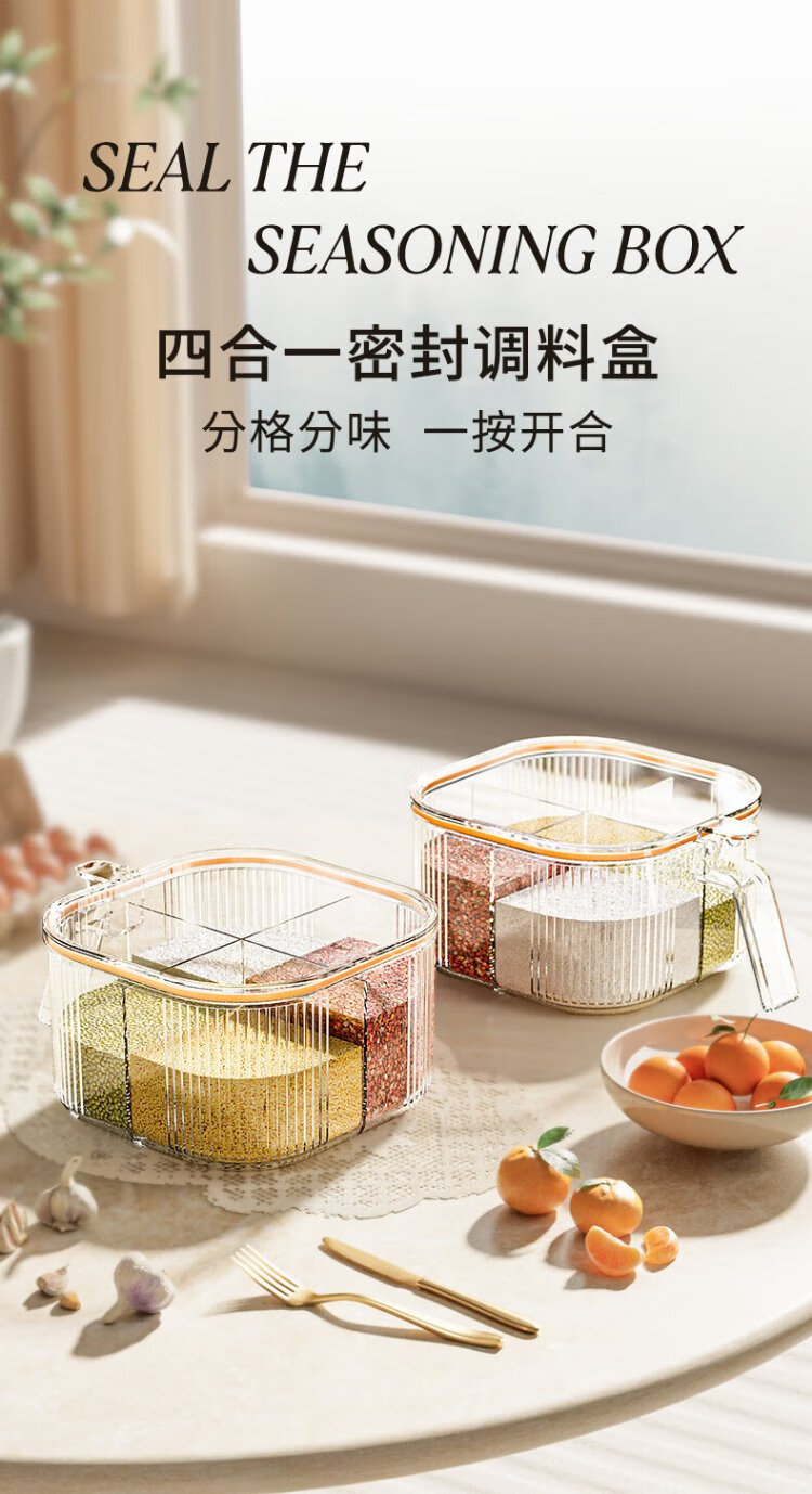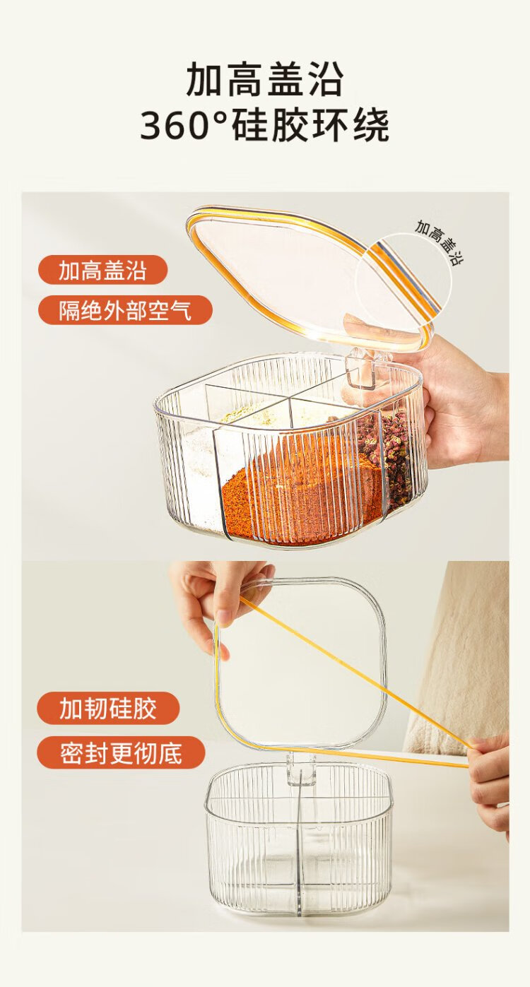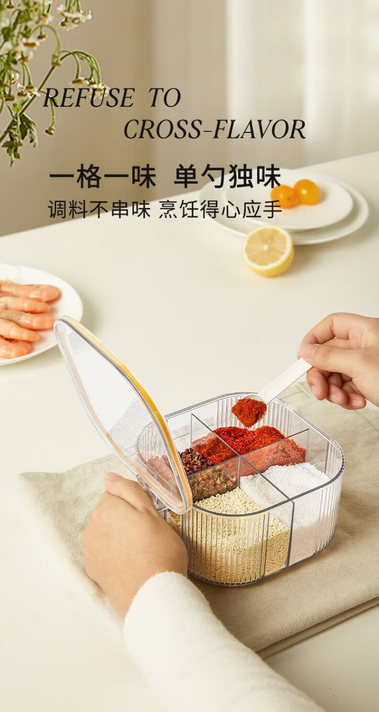 Shuwushuo multi-grid seasoning box set seasoning box kitchen salt moisture-proof four-grid seasoning jar salt jar seasoning jar storage box orange