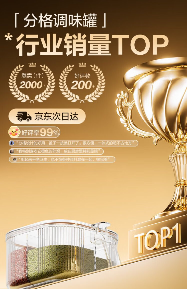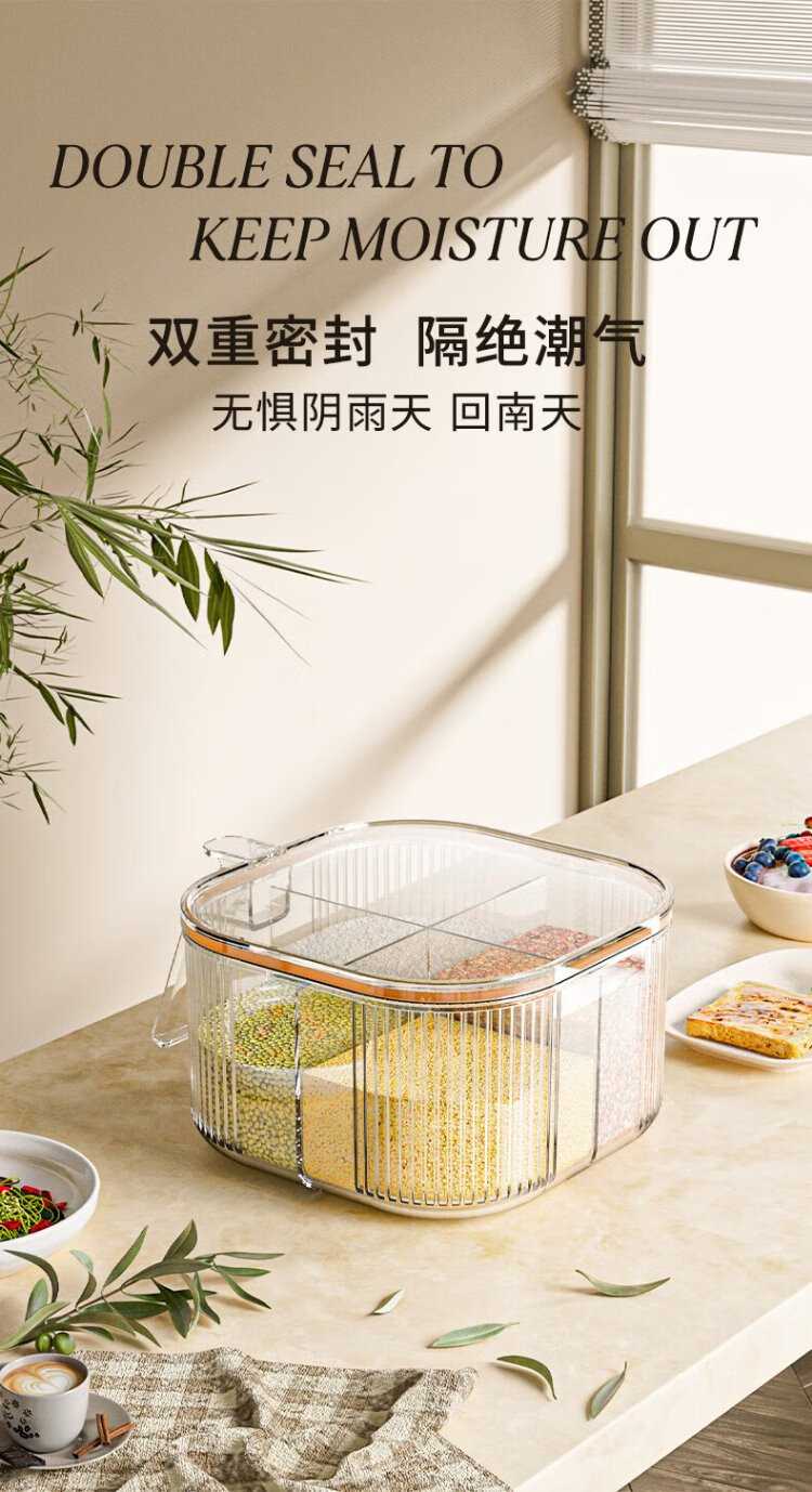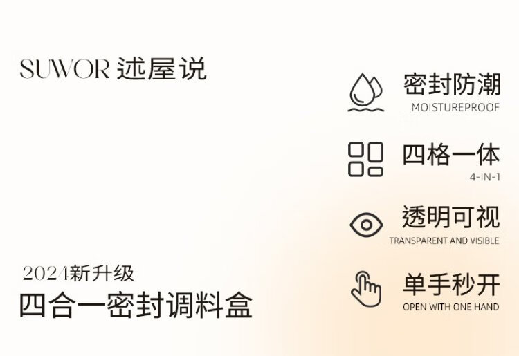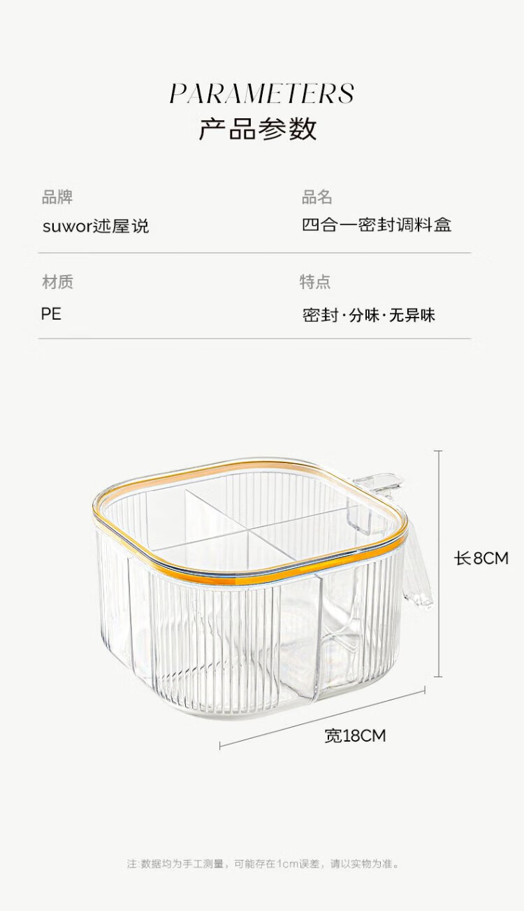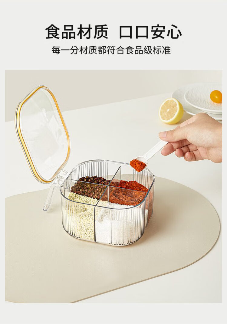 Shuwushuo multi-grid seasoning box set seasoning box kitchen salt moisture-proof four-grid seasoning jar salt jar seasoning jar storage box orange
