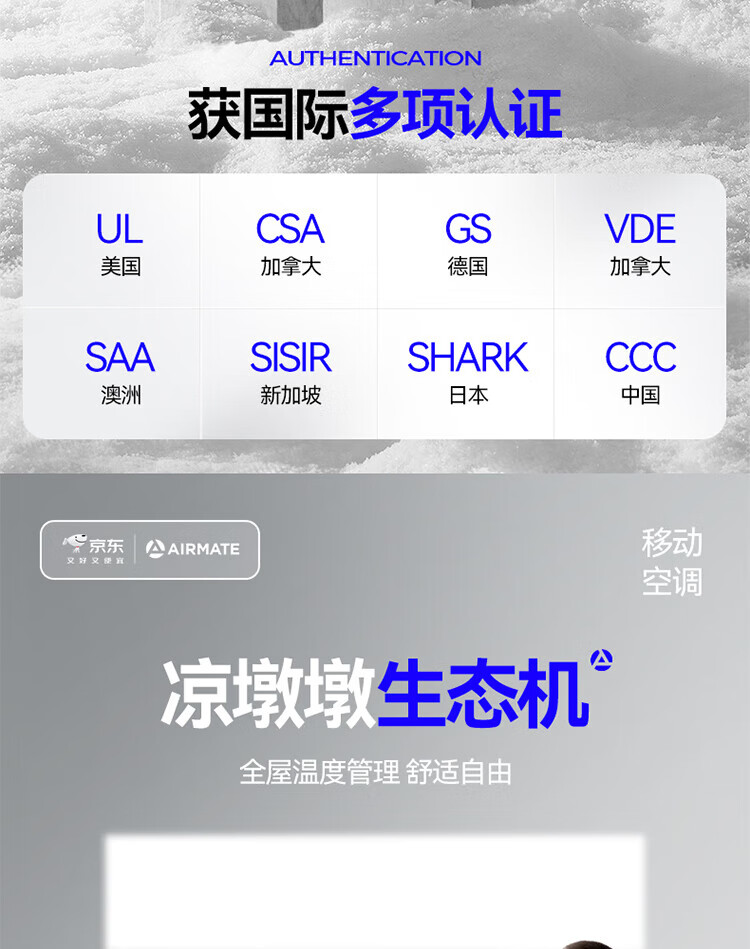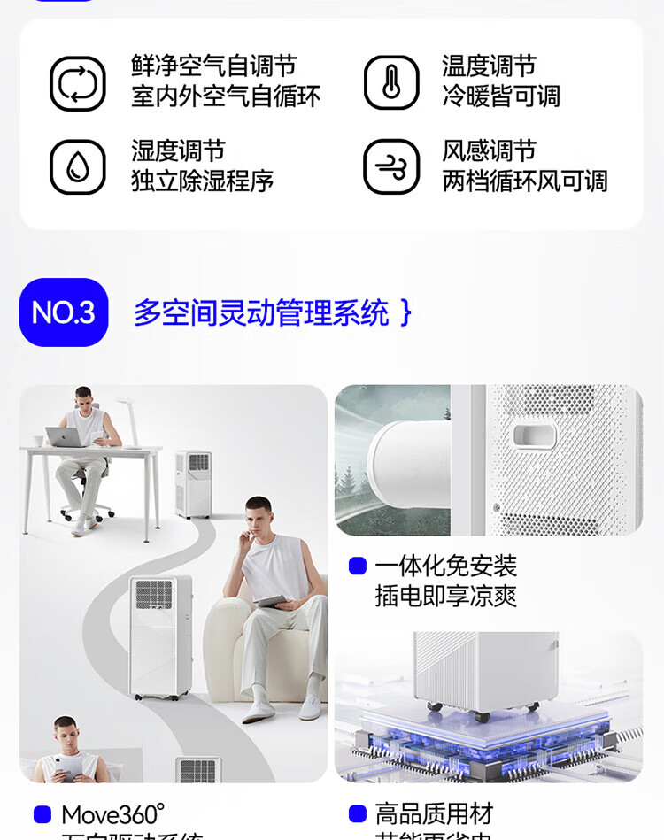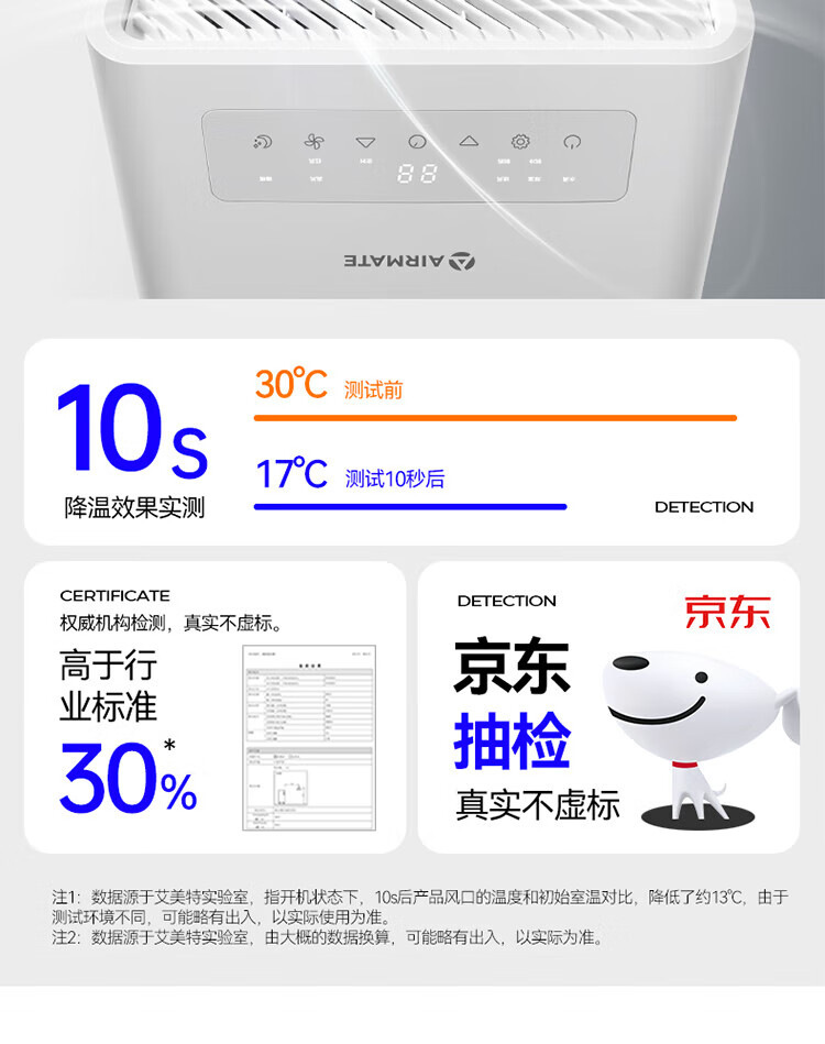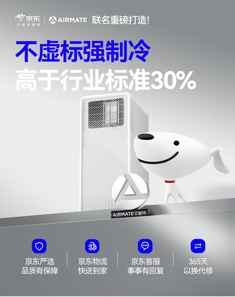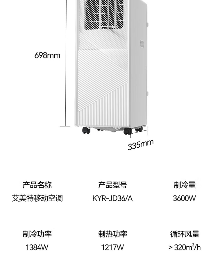 Airmate JD.com co-branded large 1.5 HP heating and cooling mobile air conditioner single cooling movable vertical no outdoor unit portable installation all-in-one unit no outdoor unit mobile small air conditioner KYR-JD36/A