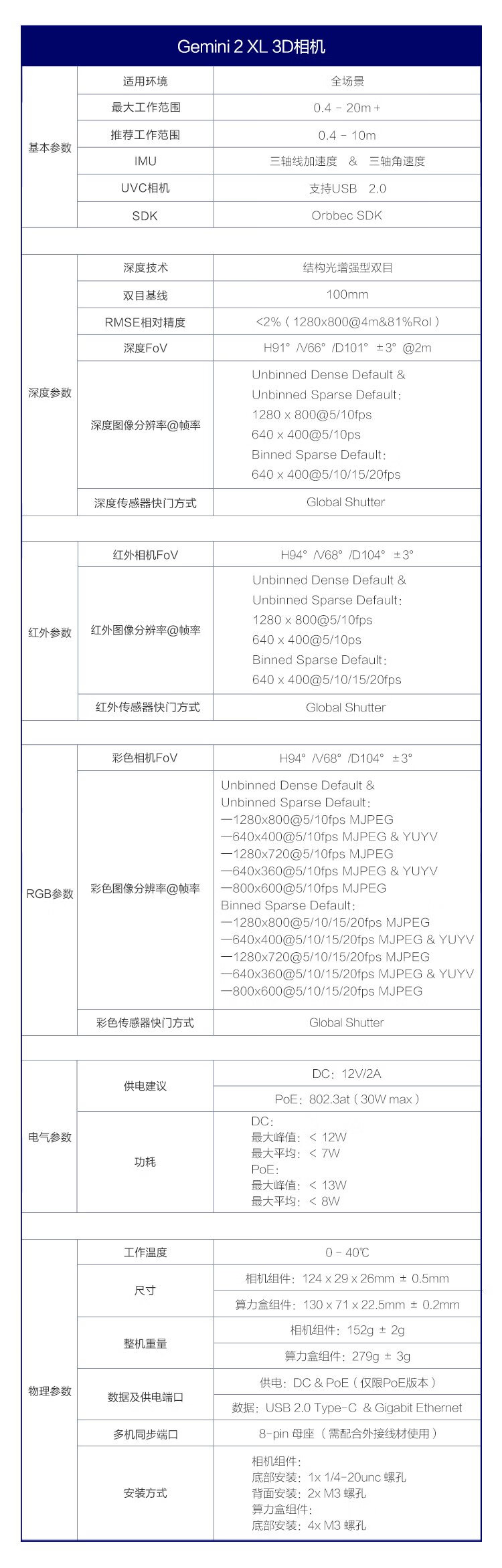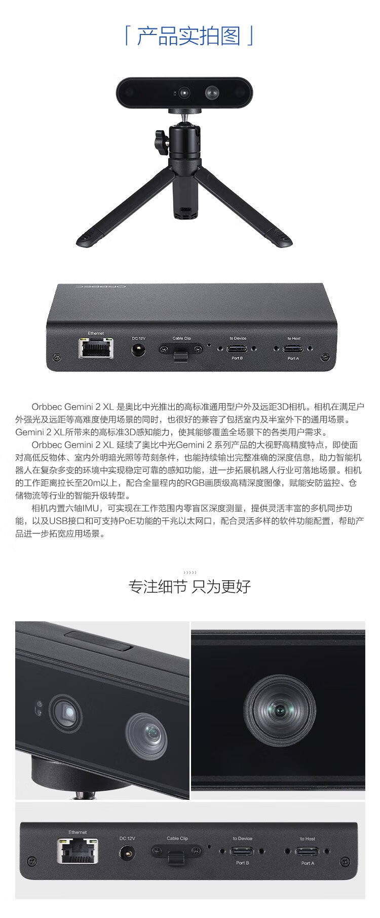 ORBBEC Gemini 2 XL-POE version structured light outdoor enhanced 20m depth robotic dog lawnmower robotic arm