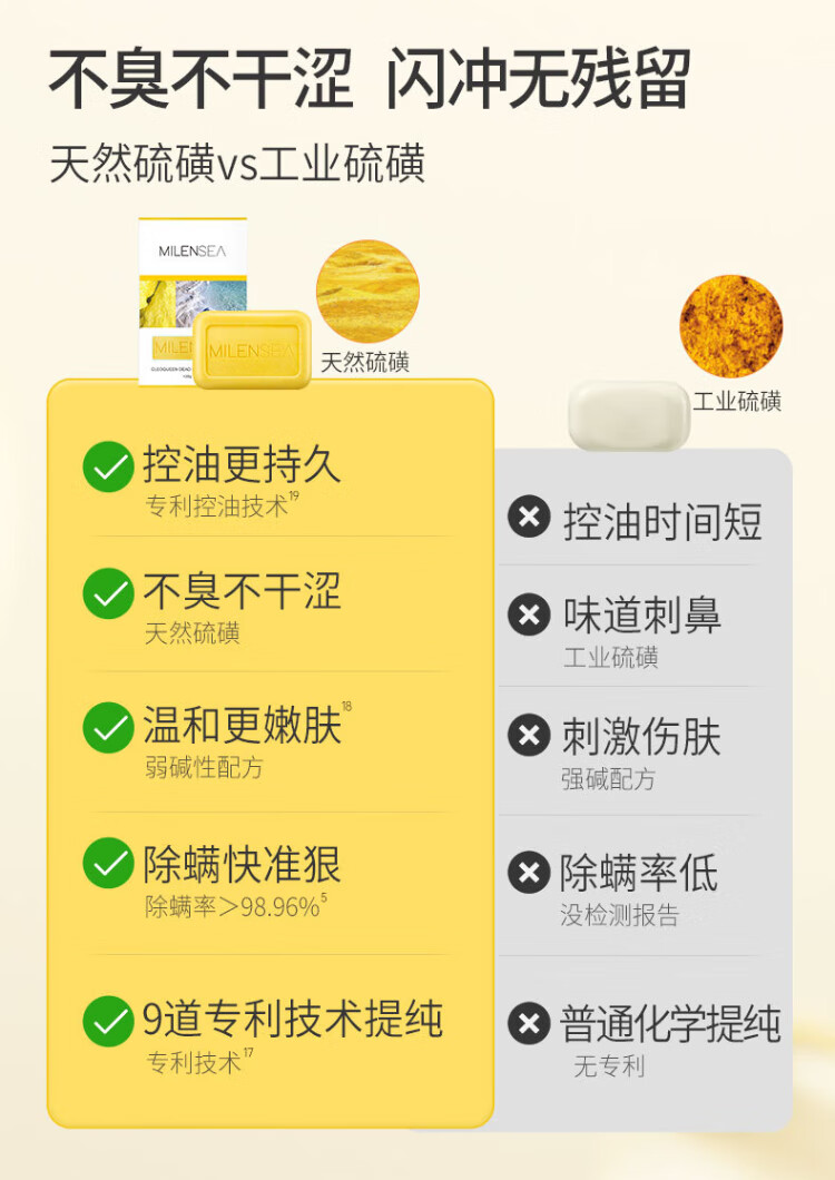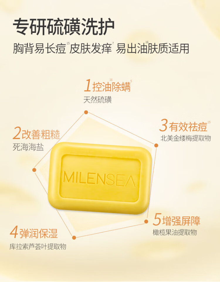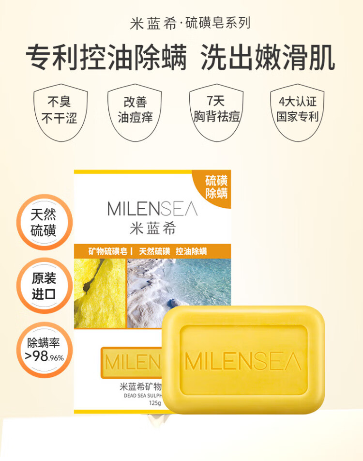 Milanxi imported Dead Sea sulfur soap mite removal soap 125g oil control, acne, antibacterial, mite removal, chest and back acne soap z