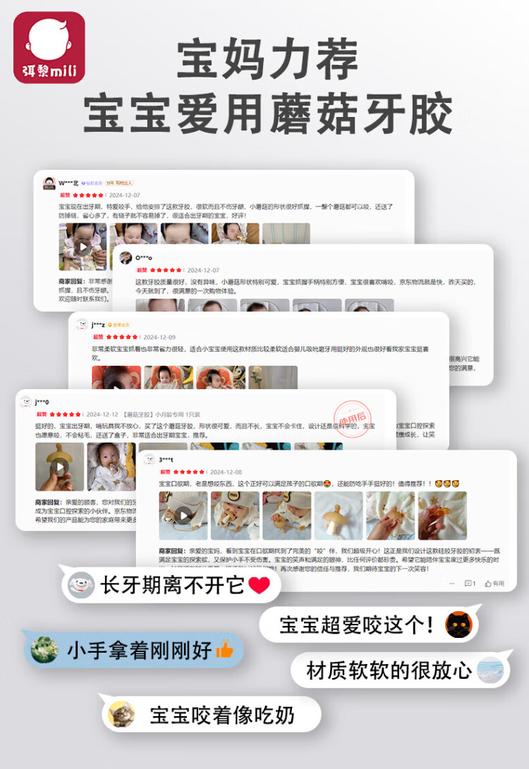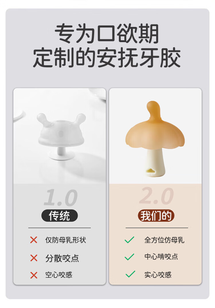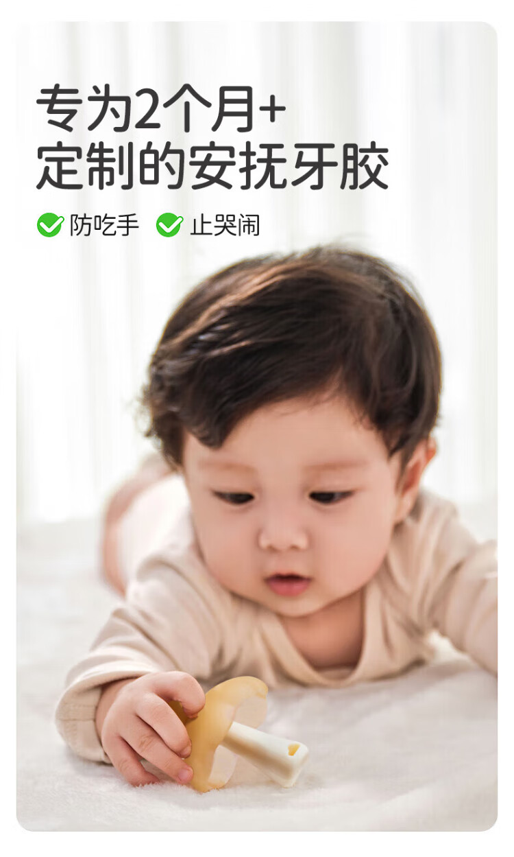 Mi Li small mushroom soothing teether chewing gel silicone baby oral toy 2-6 months anti-eating hand artifact