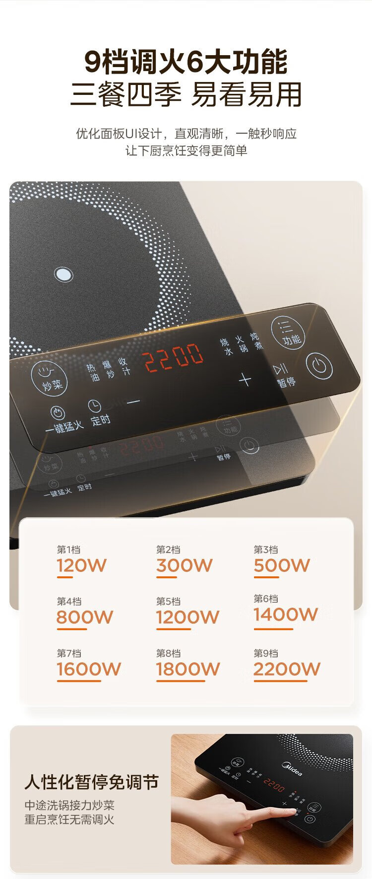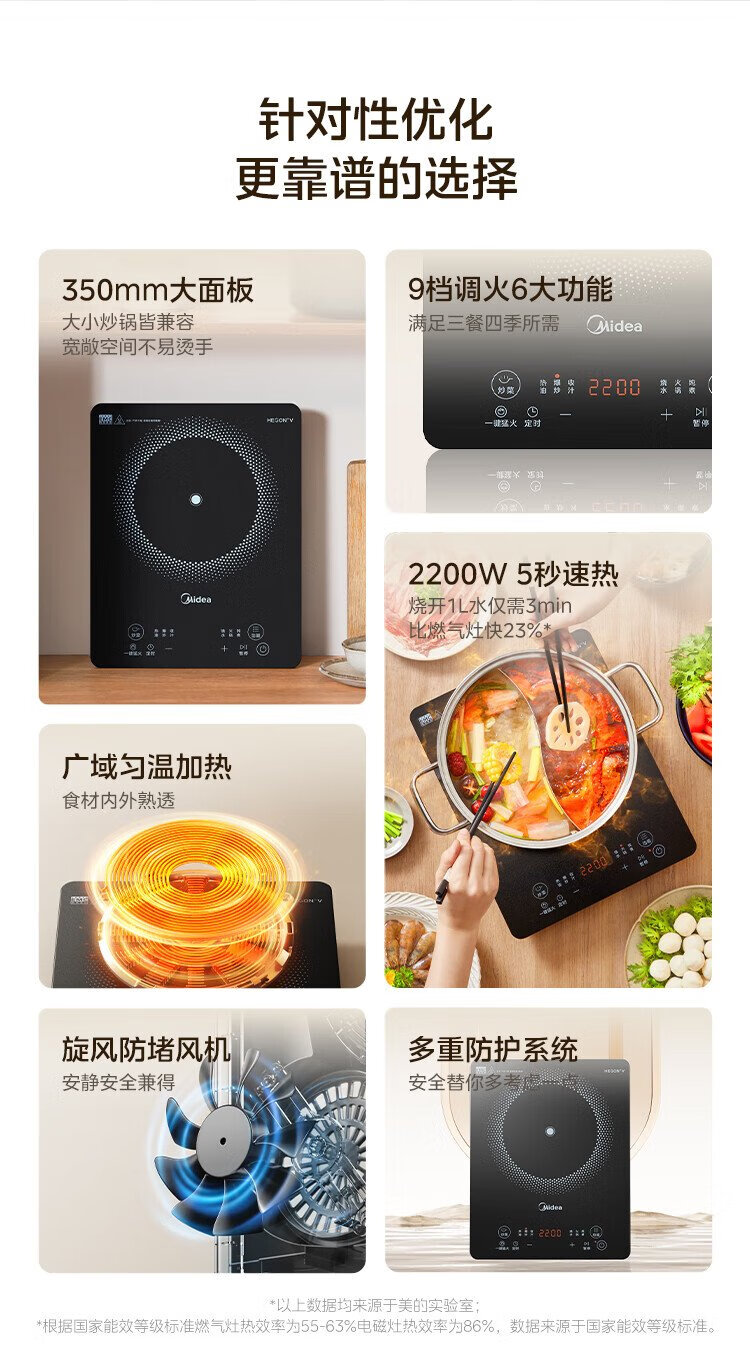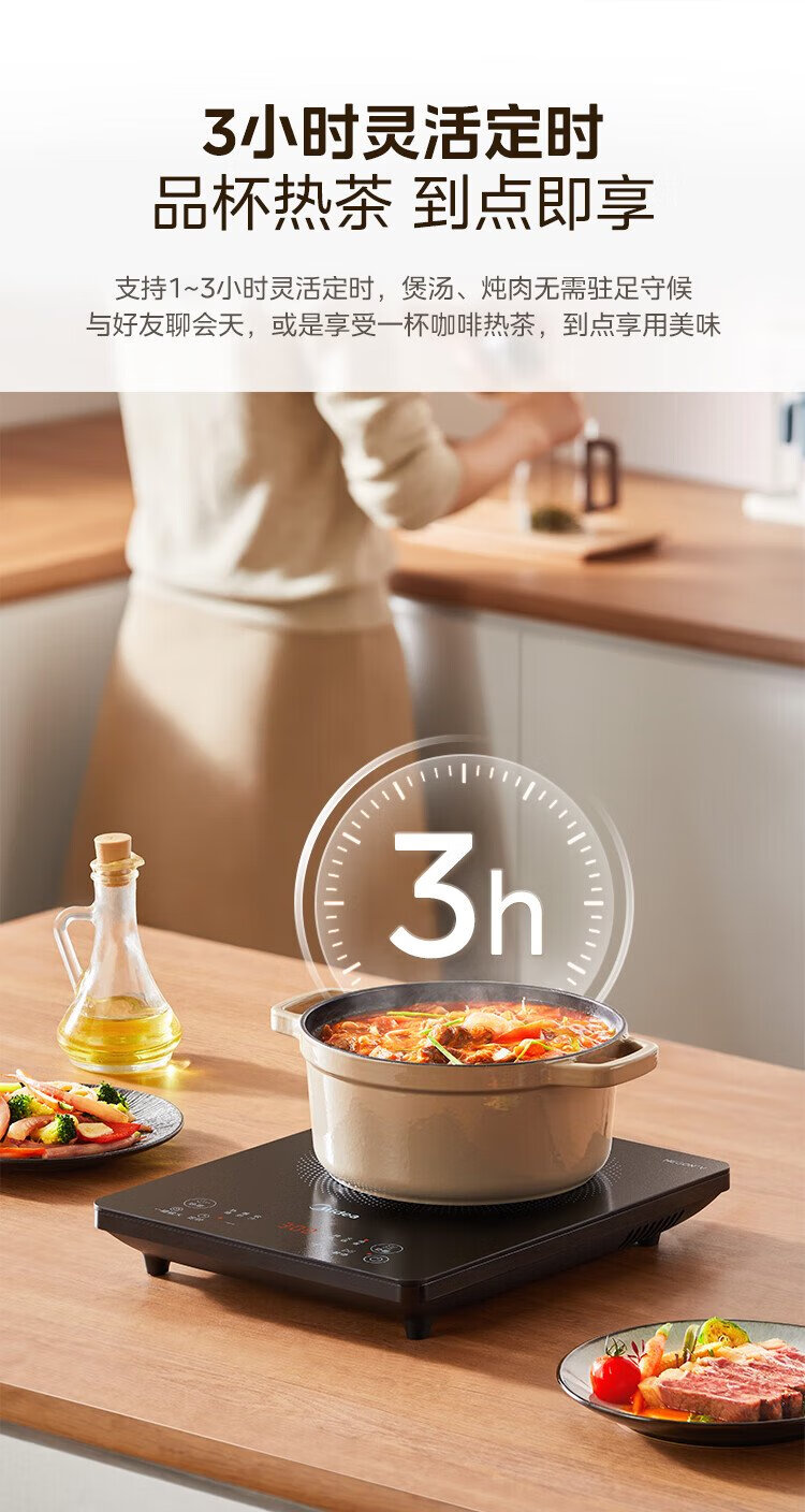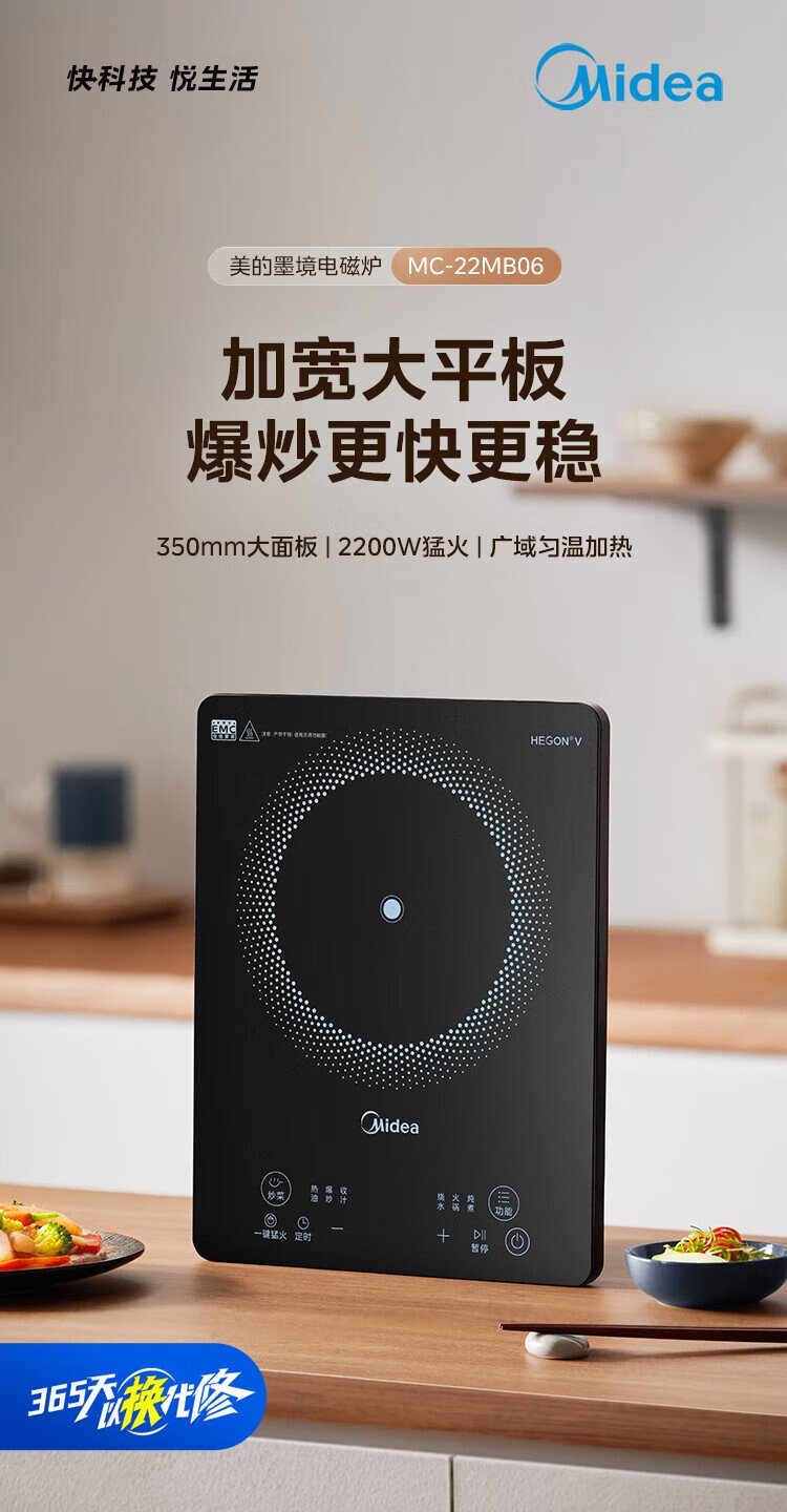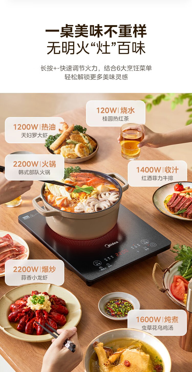 Midea household induction cooker electric ceramic stove battery stove 2200W high power fierce new induction cooker integrated microcrystalline panel stir-fry smart timer fire boiler MC-22MB06