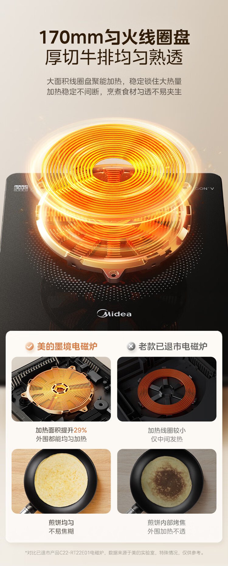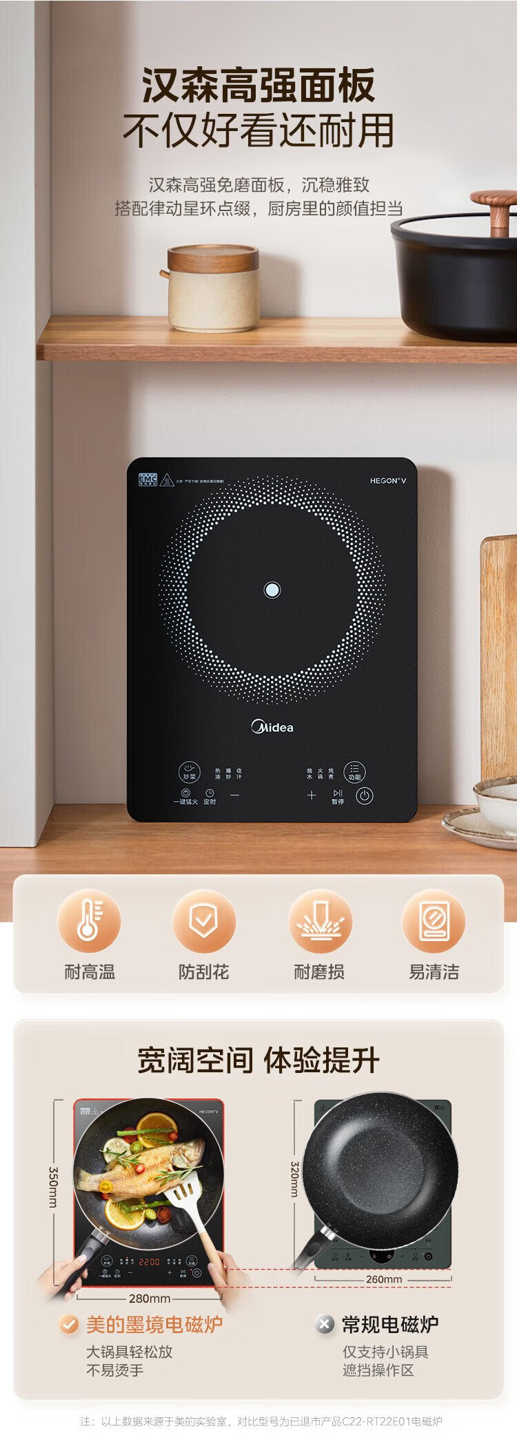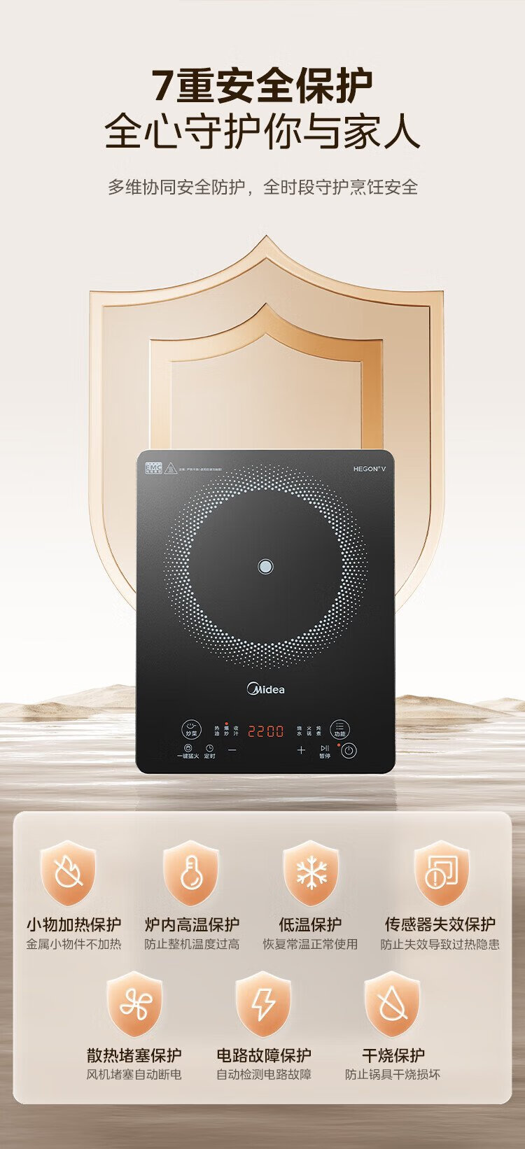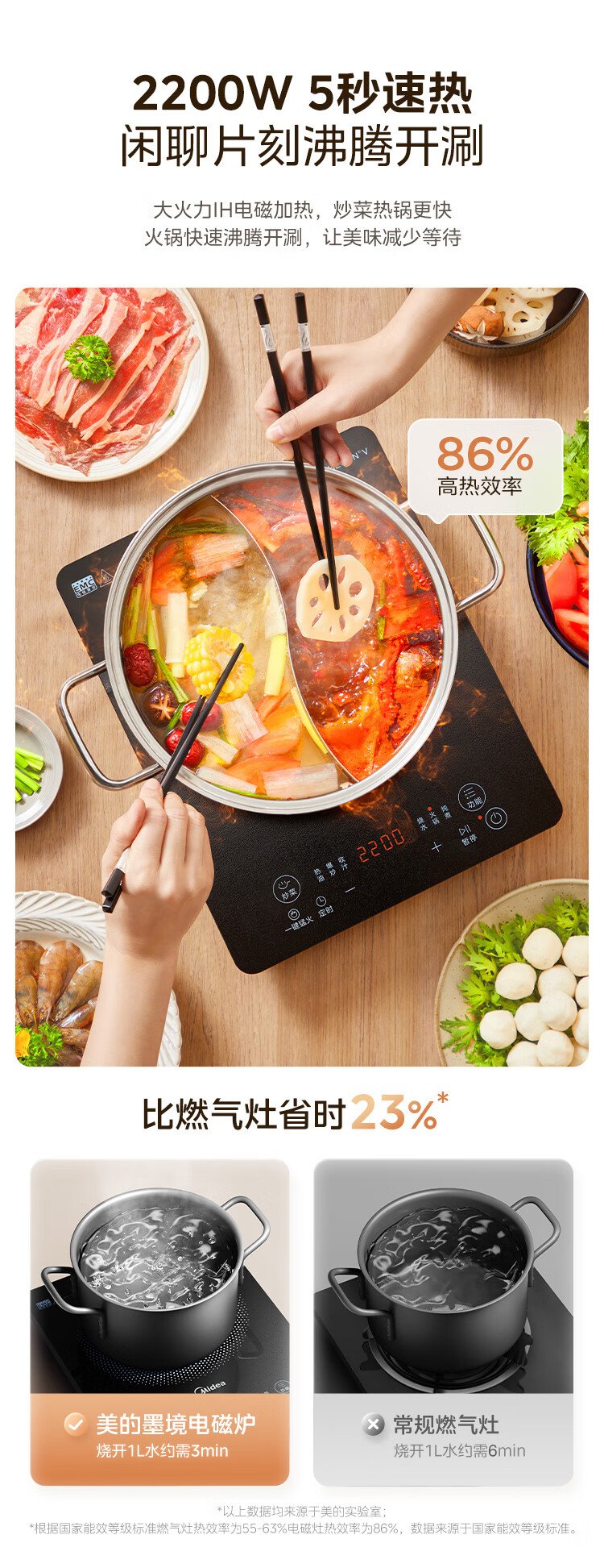 Midea household induction cooker electric ceramic stove battery stove 2200W high power fierce new induction cooker integrated microcrystalline panel stir-fry smart timer fire boiler MC-22MB06