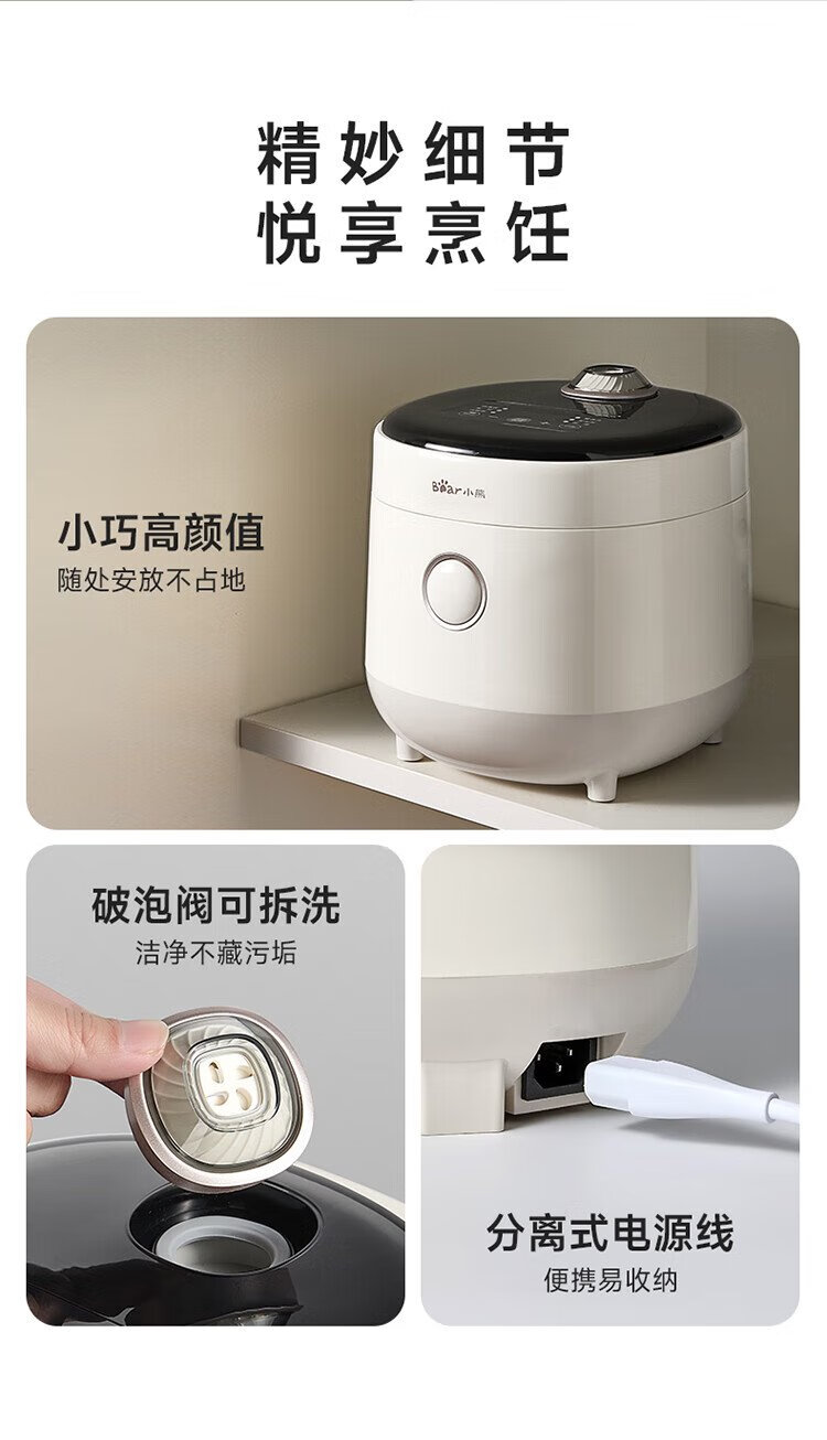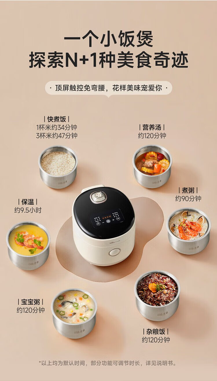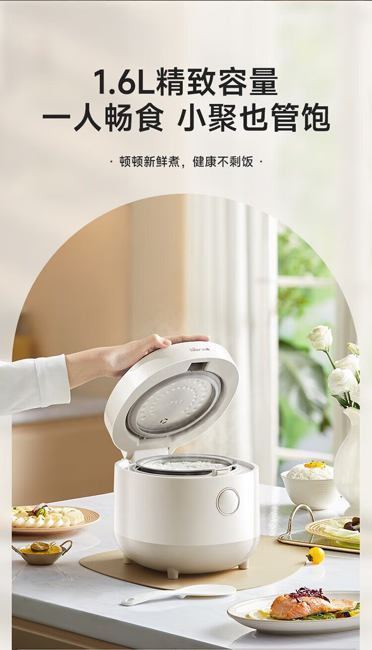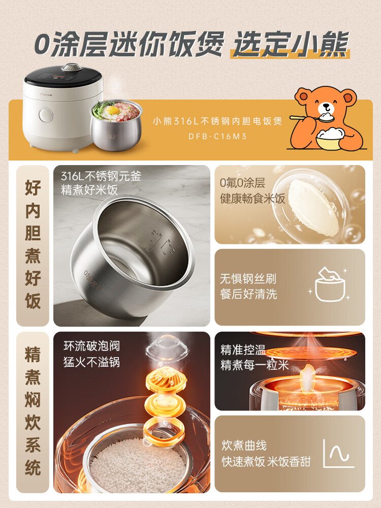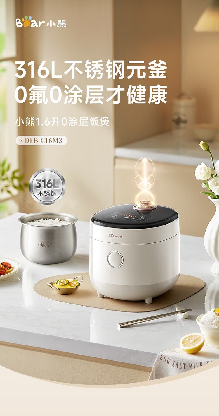 Bear rice cooker for 1-2 people, small rice cooker, 0 coating, healthy 316L stainless steel, one-button fast cooking, micro-pressure multi-function, can be reserved 1.6LDFB-C16M3 national subsidy