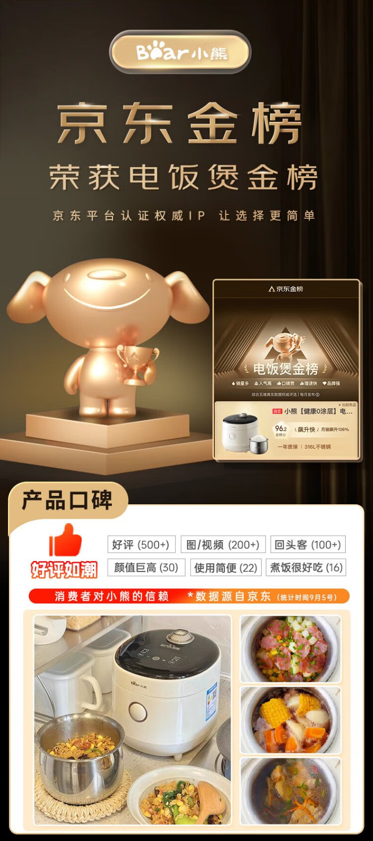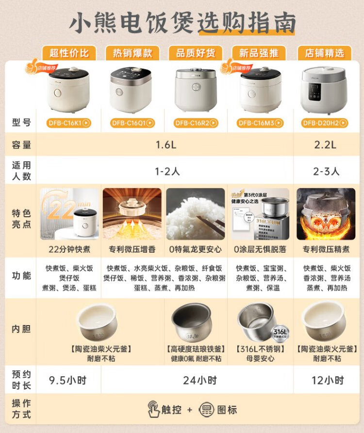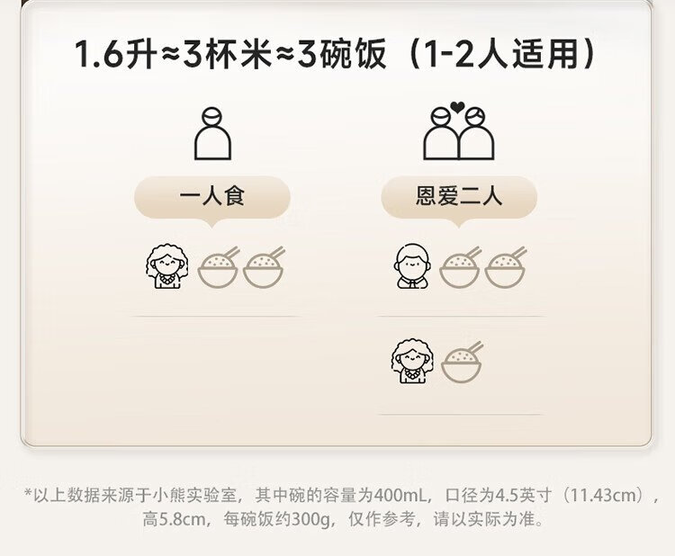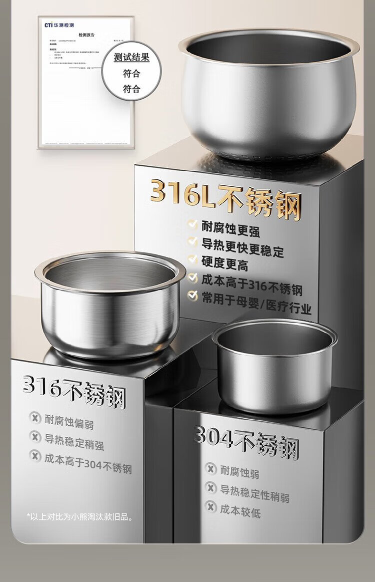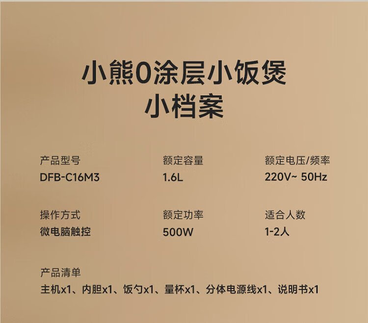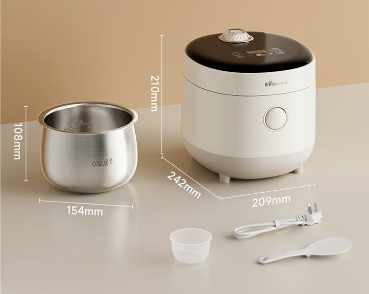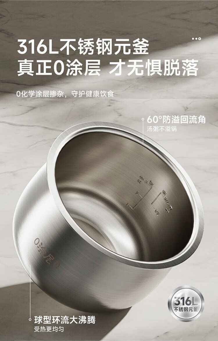 Bear rice cooker for 1-2 people, small rice cooker, 0 coating, healthy 316L stainless steel, one-button fast cooking, micro-pressure multi-function, can be reserved 1.6LDFB-C16M3 national subsidy