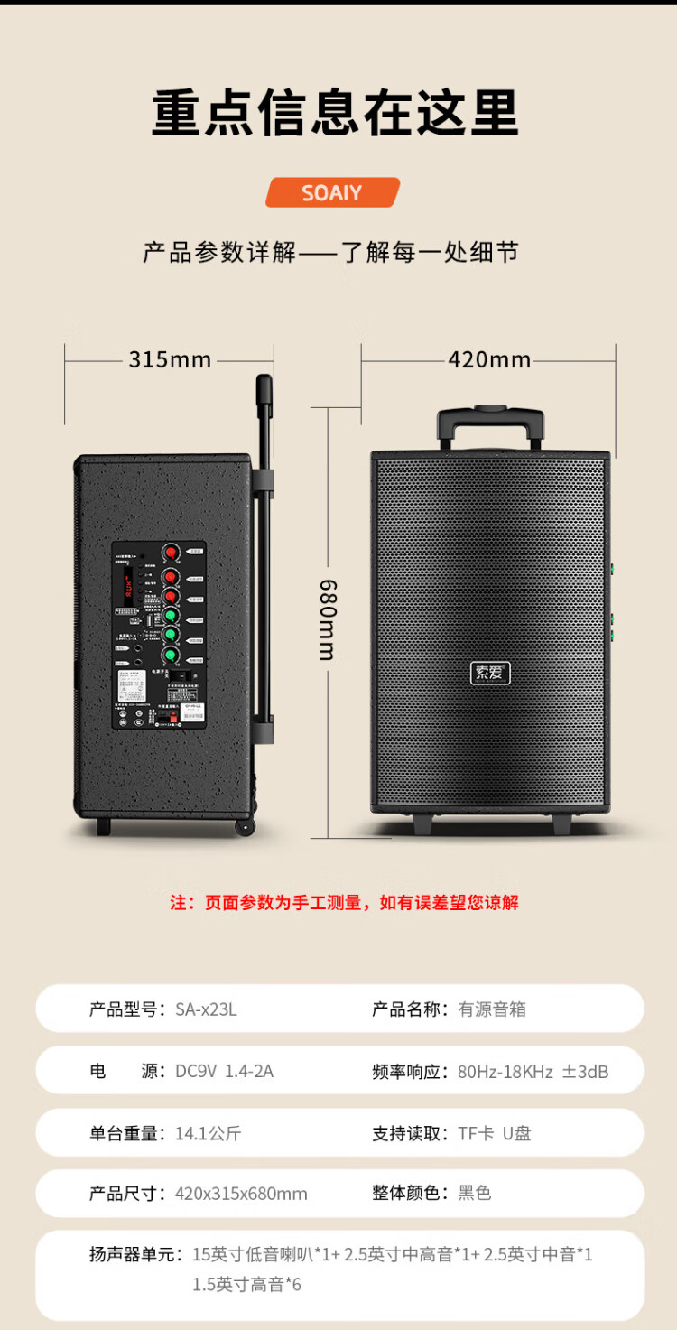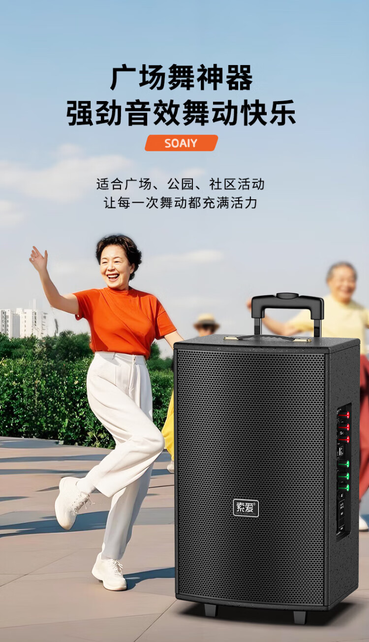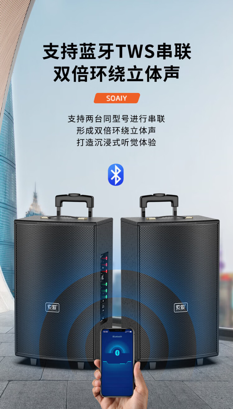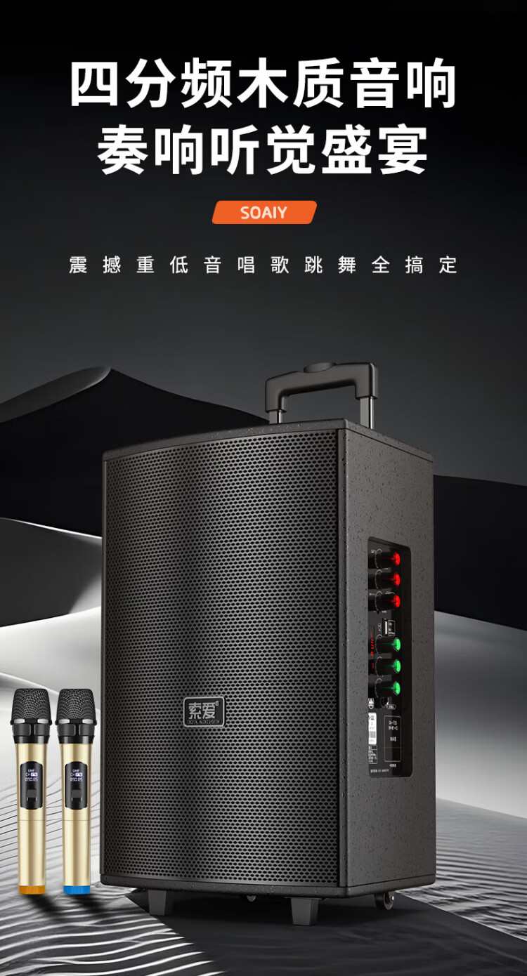 Sony Ericsson (soaiy) 15-inch square dance audio high-power portable wooden outdoor heavy bass Bluetooth karaoke special high-volume mobile trolley speaker outdoor performance dual microphone SA-X23L