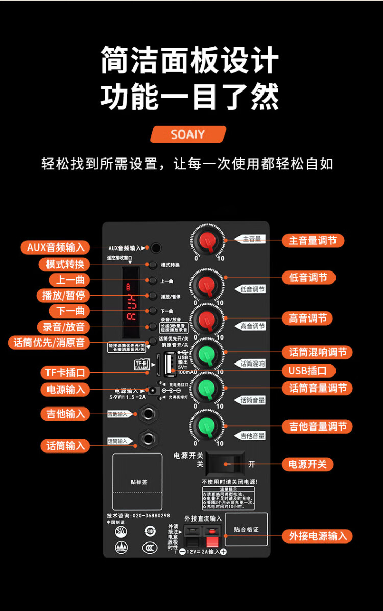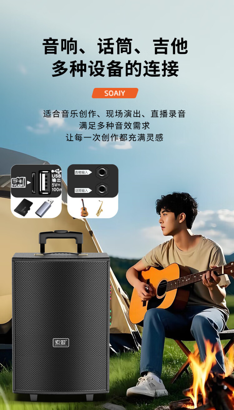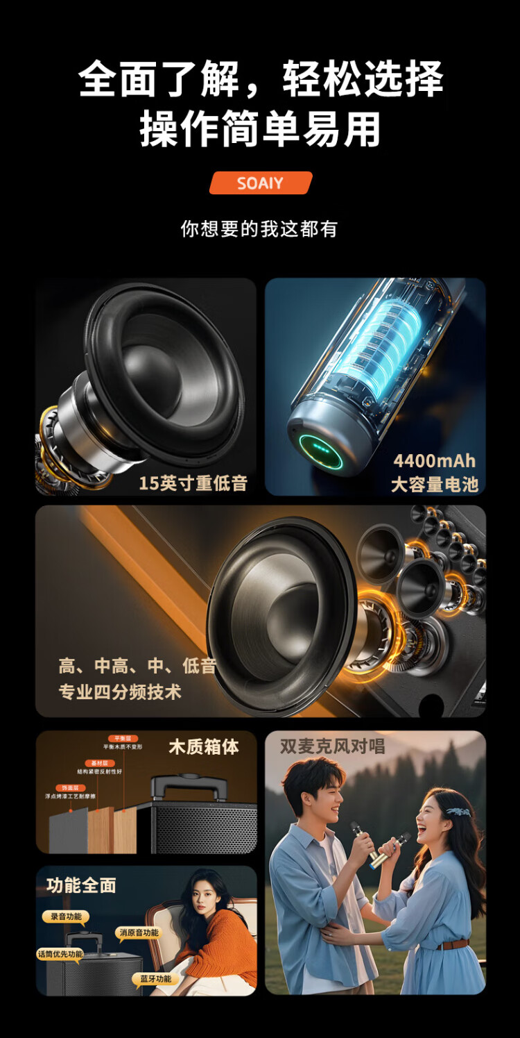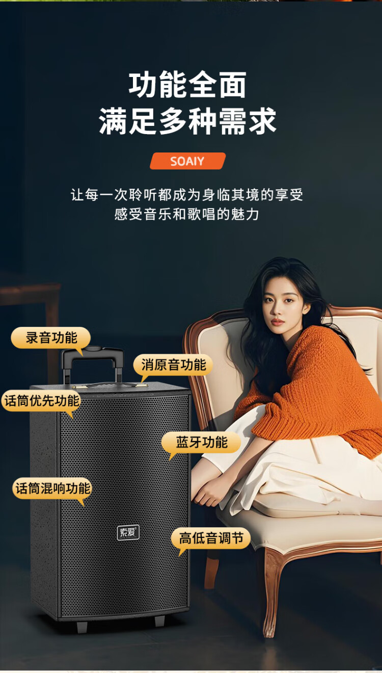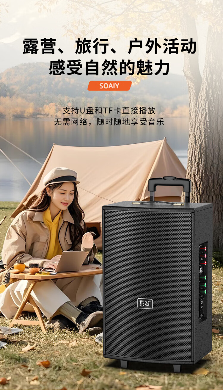Sony Ericsson (soaiy) 15-inch square dance audio high-power portable wooden outdoor heavy bass Bluetooth karaoke special high-volume mobile trolley speaker outdoor performance dual microphone SA-X23L