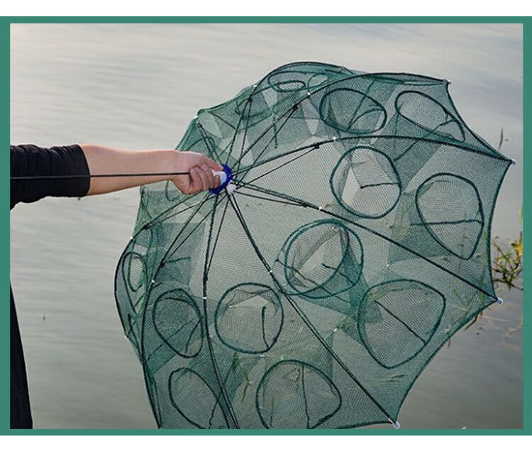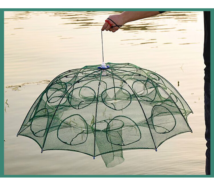 Green Tunan foldable retractable fish net, fish and shrimp cage, lobster fishing net artifact, 8 sides and 8 holes (10 baits + accessories)