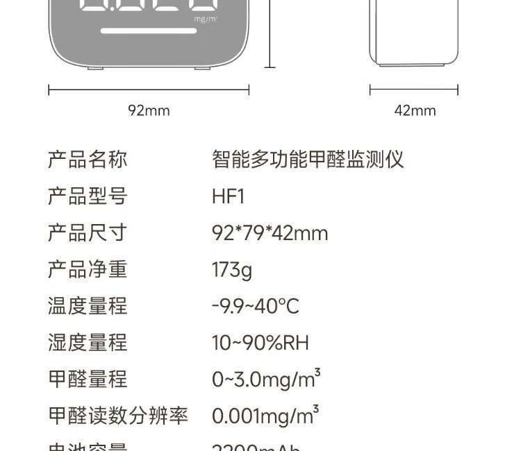 Duke Formaldehyde Detector Home Formaldehyde Tester Air Quality Detection Temperature and Humidity Meter Clock Mijia Zhilian HF1