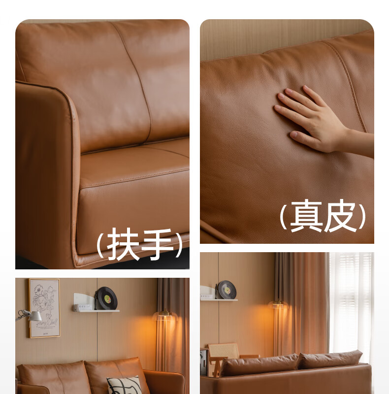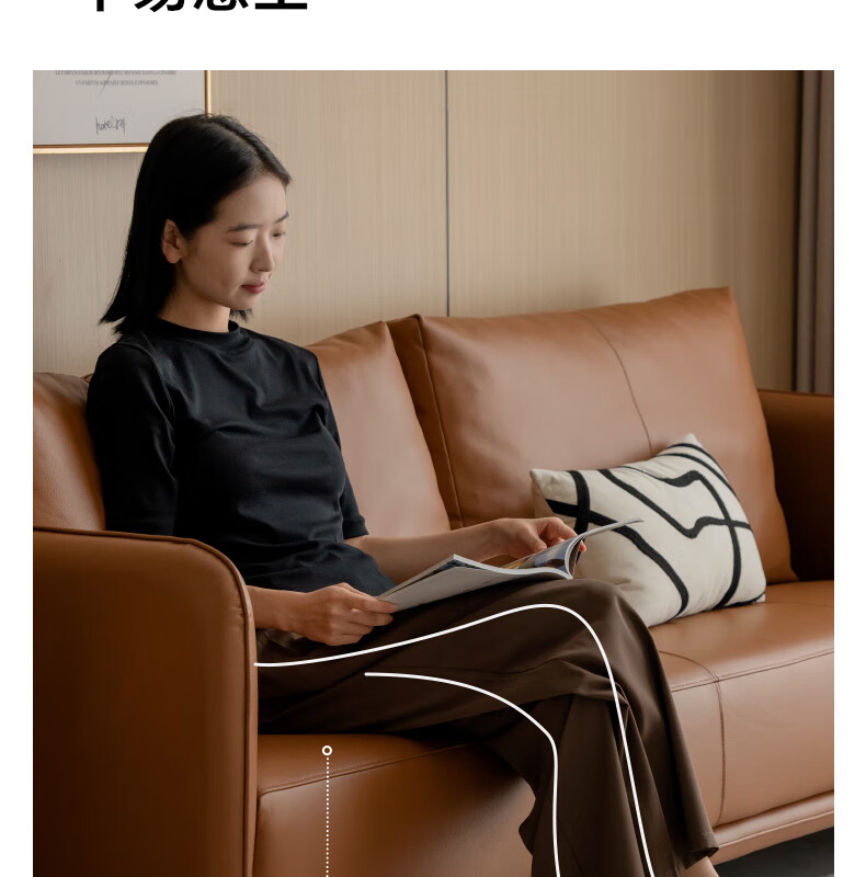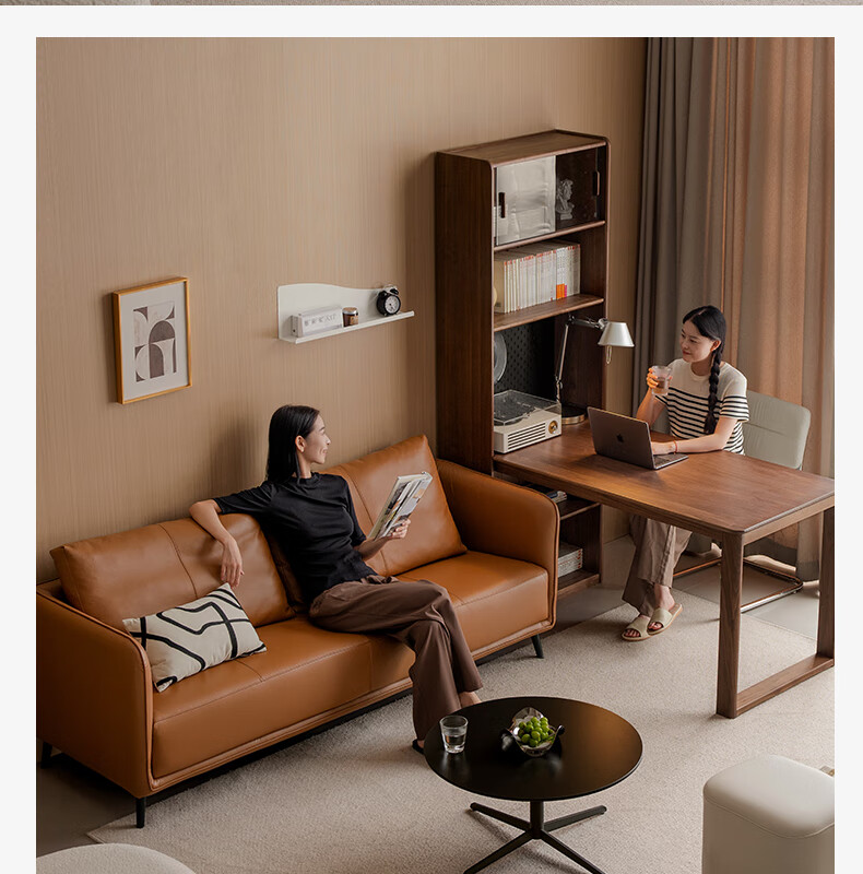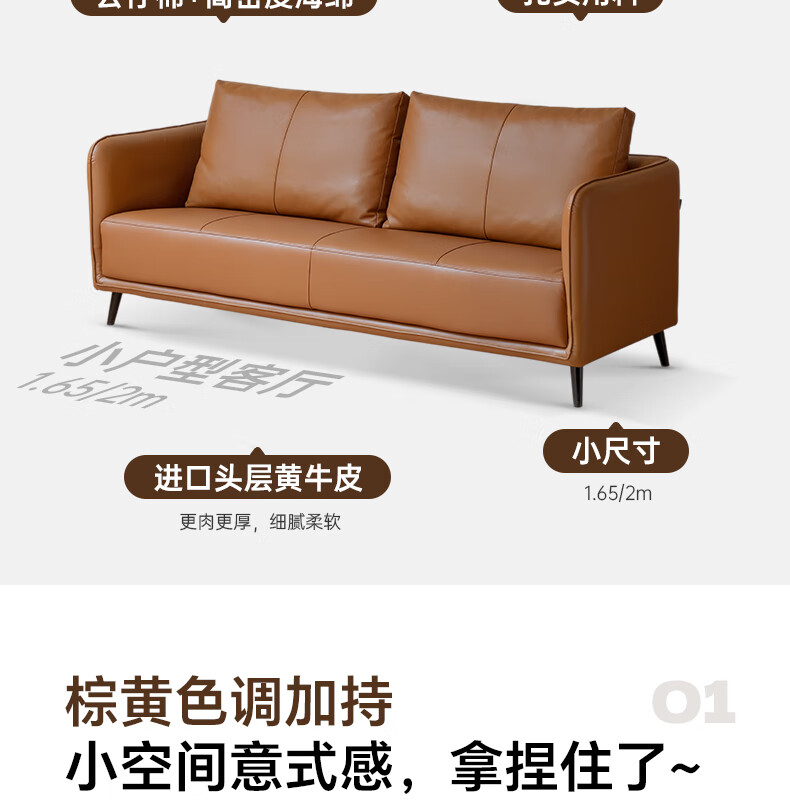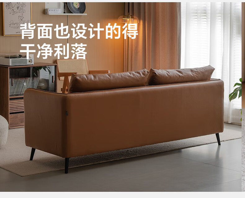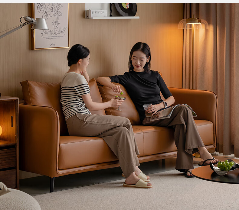 Genji Wood Language Leather Sofa Italian Minimalist First Layer Cowhide Sofa Living Room Home Small Apartment Straight Sofa 2 Meters