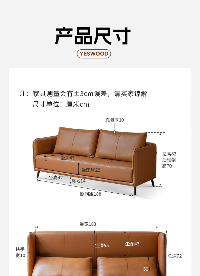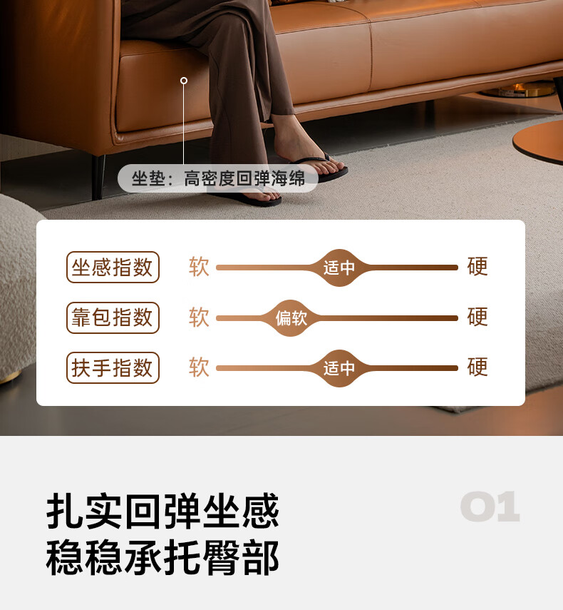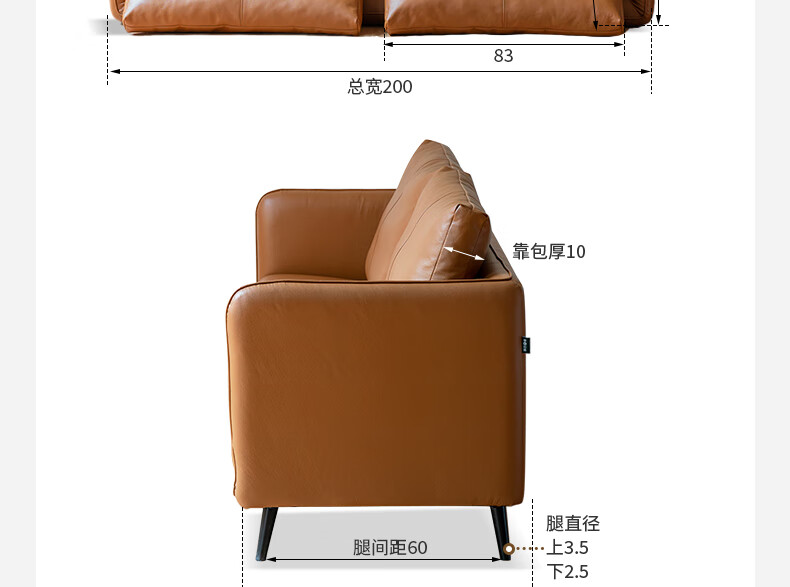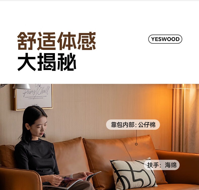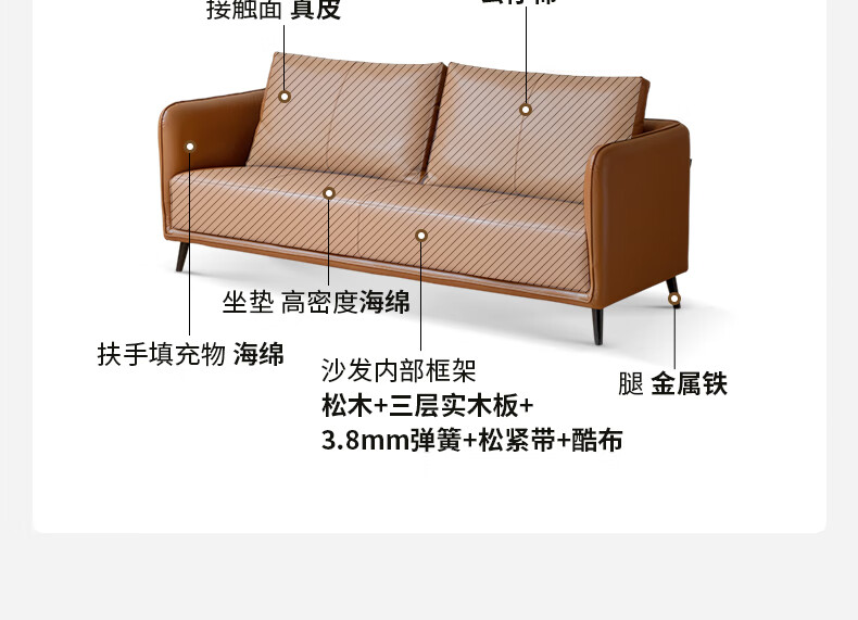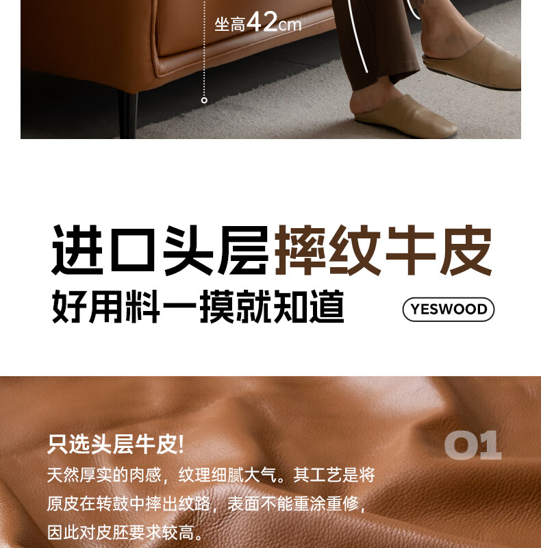 Genji Wood Language Leather Sofa Italian Minimalist First Layer Cowhide Sofa Living Room Home Small Apartment Straight Sofa 2 Meters