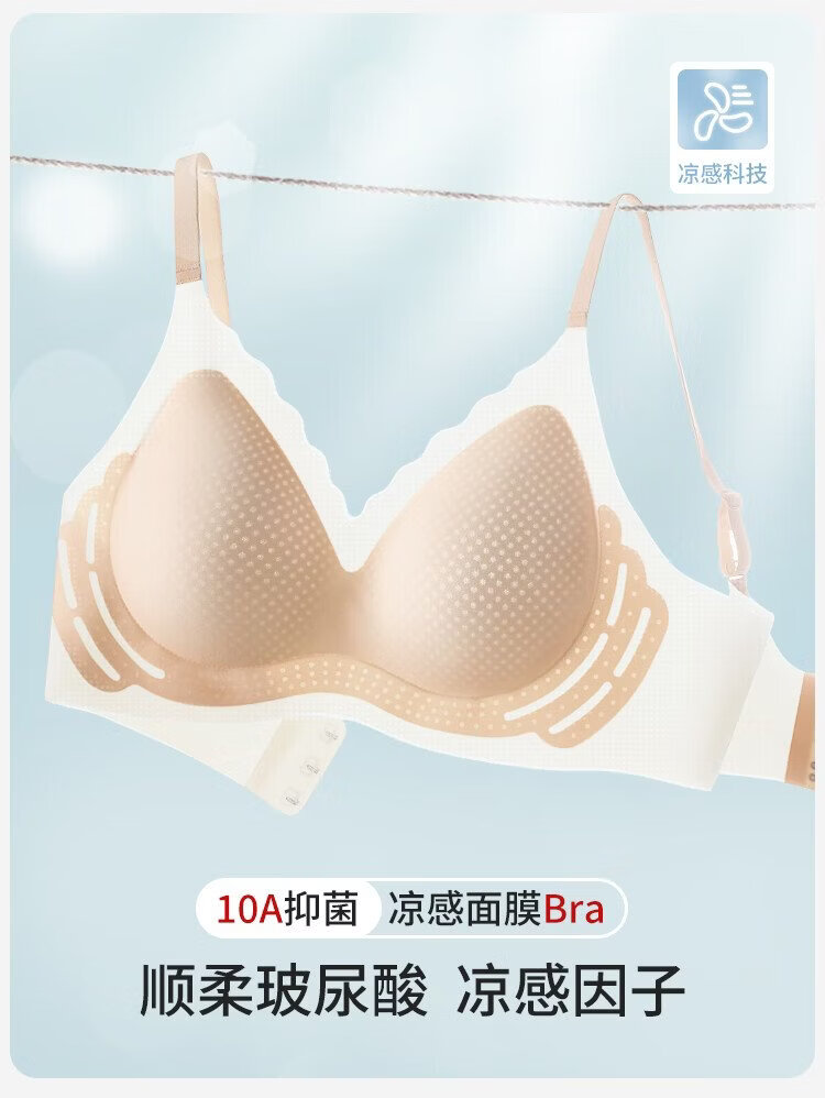 Urban Beauty Underwear Women's 10A antibacterial sports cool ice silk seamless summer thin push-up bra foundation liquid skin XL