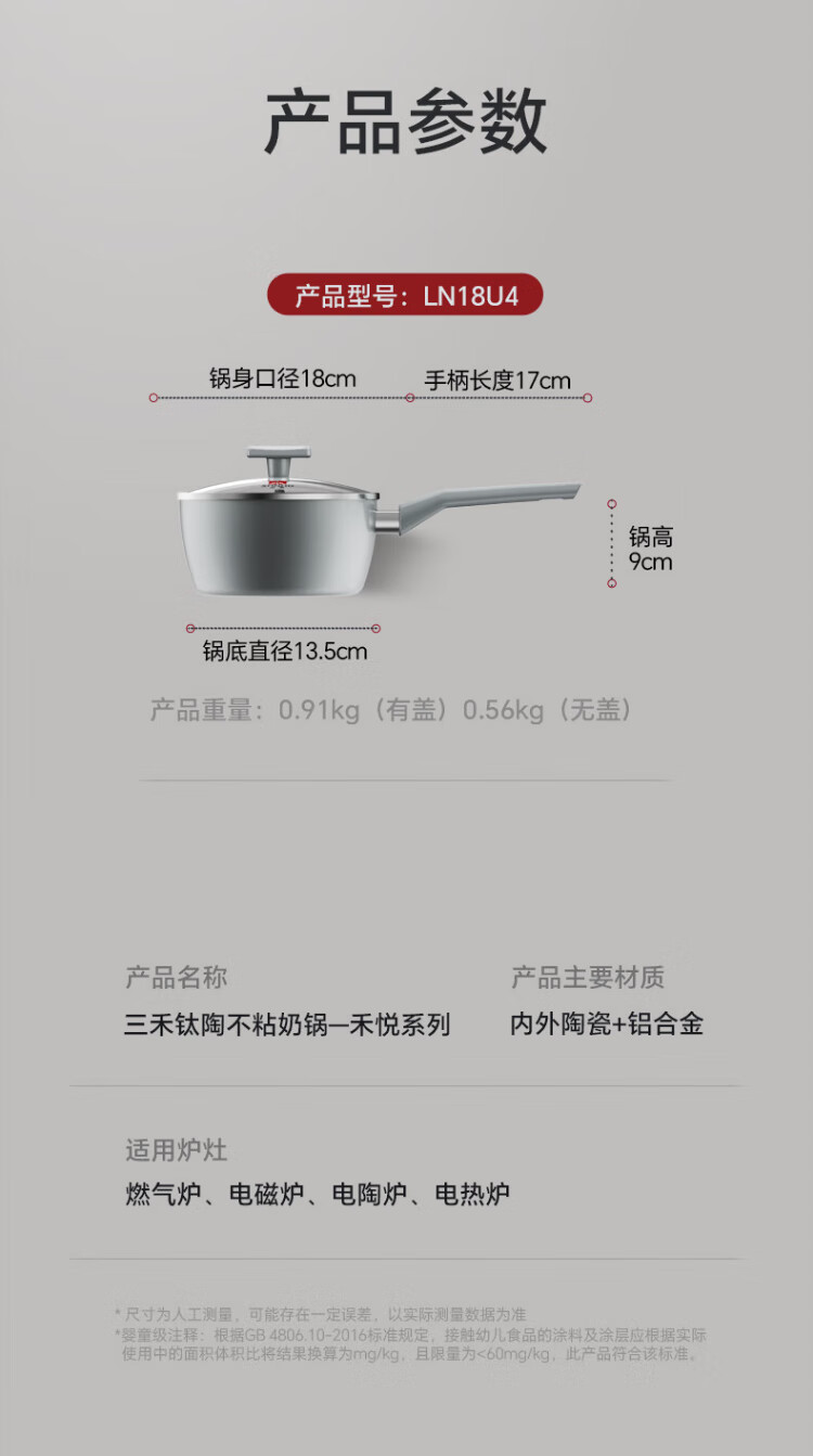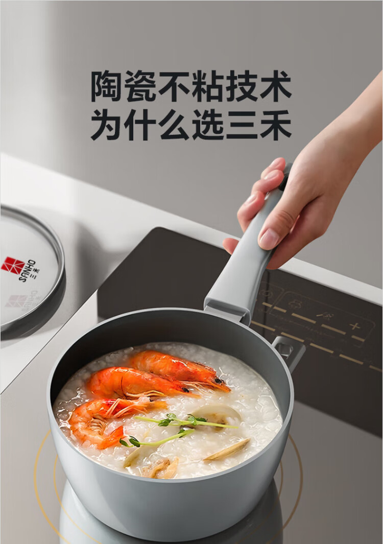 Sanhe ceramic milk pot non-stick pot household small pot noodle pot baby food supplement small milk pot induction cooker Dai Qinglan 18cm