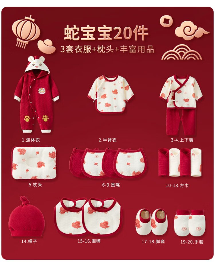 HuYangYang baby clothes newborn clothes gift box set newborn baby full moon gift high-end supplies 20-piece set