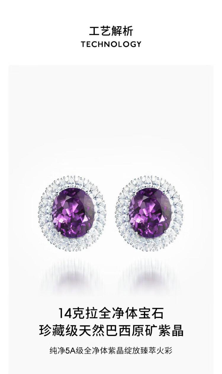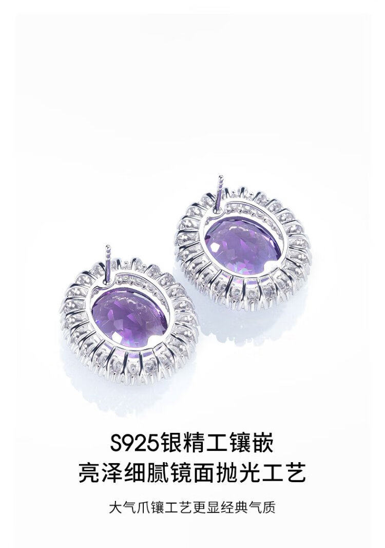 Rarebeauty natural amethyst earrings women's silver jewelry gem amethyst earrings fashion high-end birthday gift for girlfriend