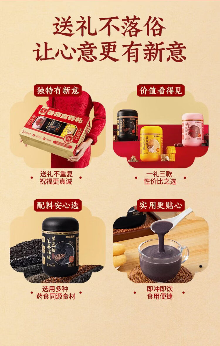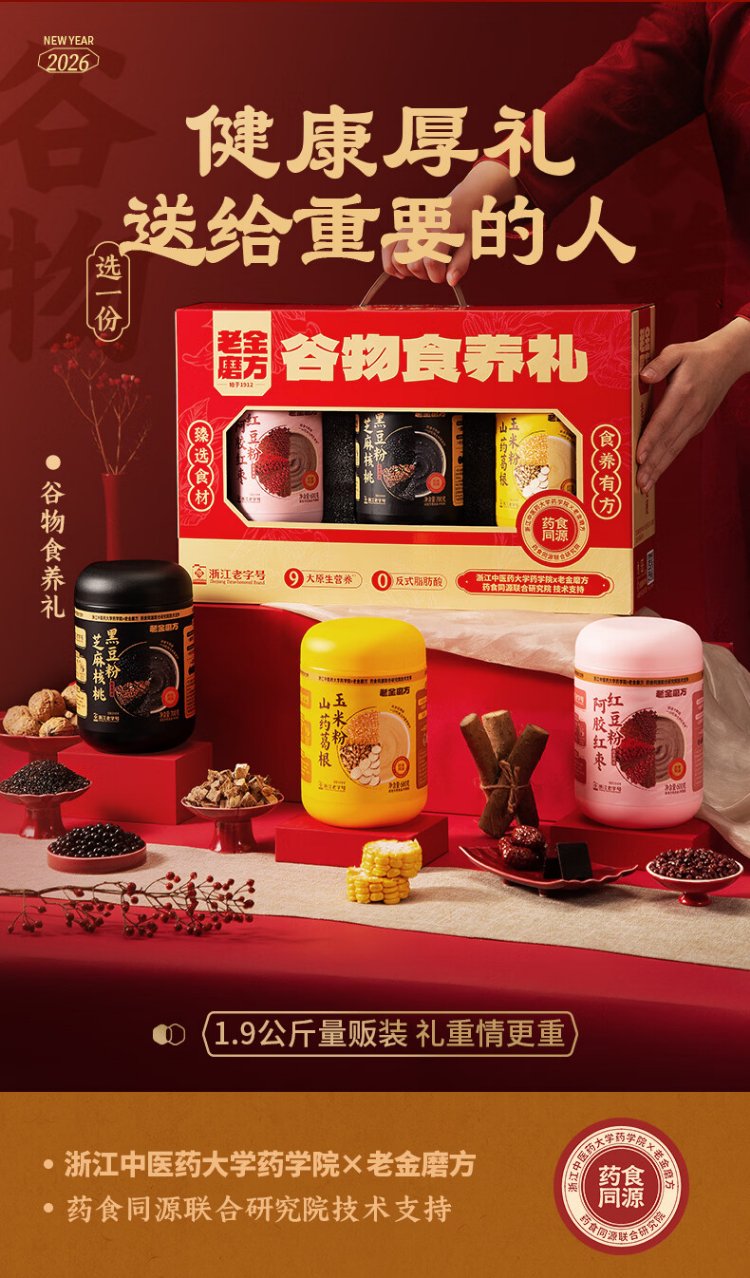 Lao Jin Mo Square Cereal Food 1900g New Year Gift Box for Elders New Year and Spring Festival Gifts Sesame Paste Donkey-hide Gelatin