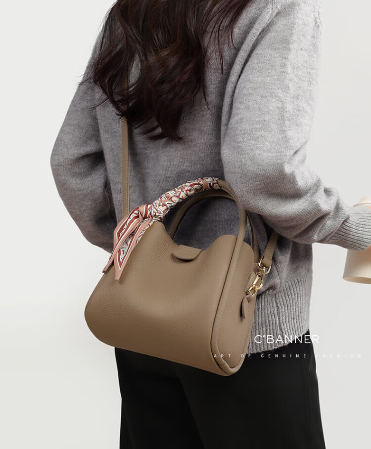 C.BANNER first-layer cowhide bag, women's handbag, shoulder bag, light luxury vegetable basket, birthday gift, high-end gift for girlfriend and wife