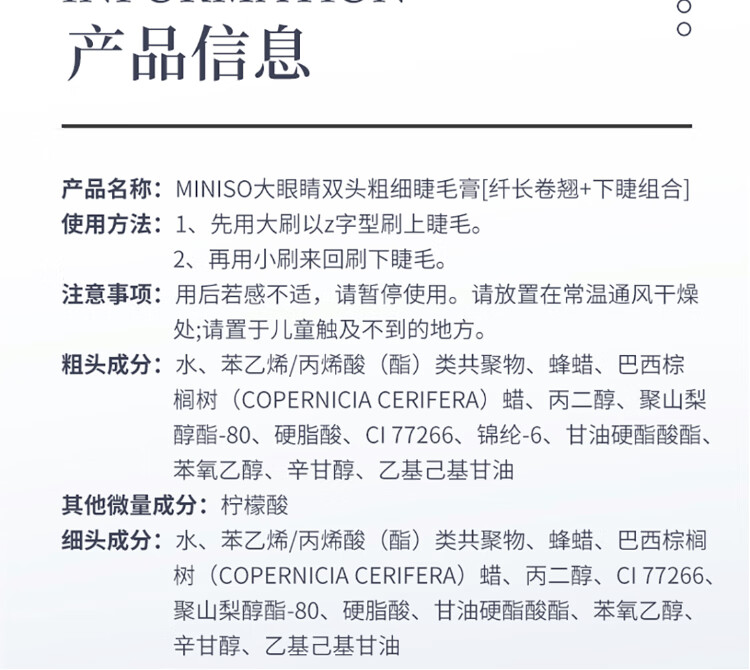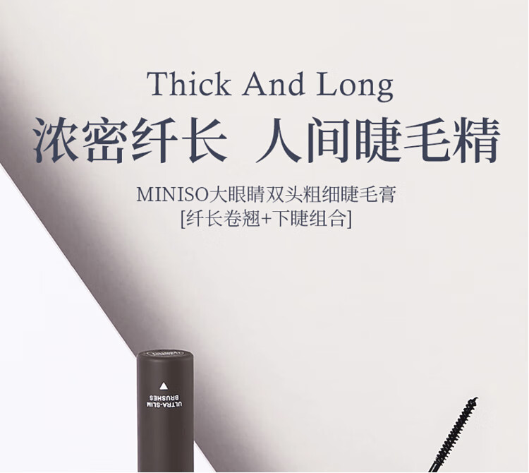 MINISO Big Eyes Double-ended Thick Mascara Waterproof and Not Easy to Smudge Primer Gift Long Curl + Lower Eyelash Combination