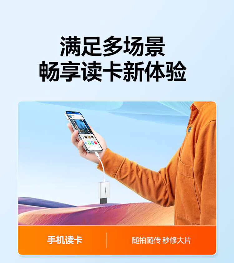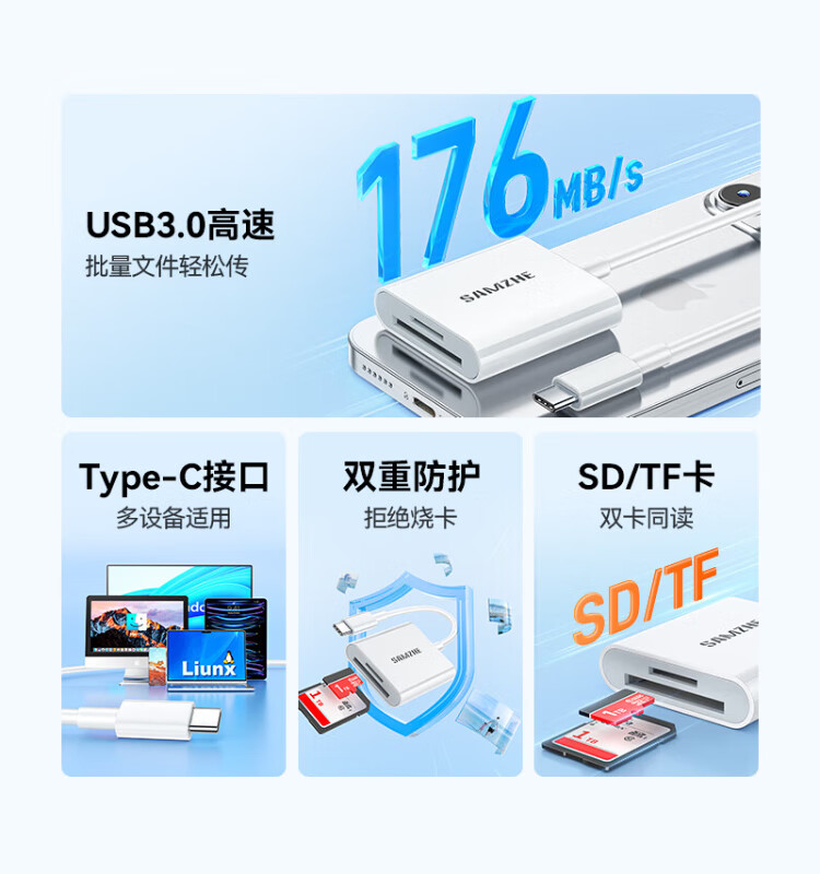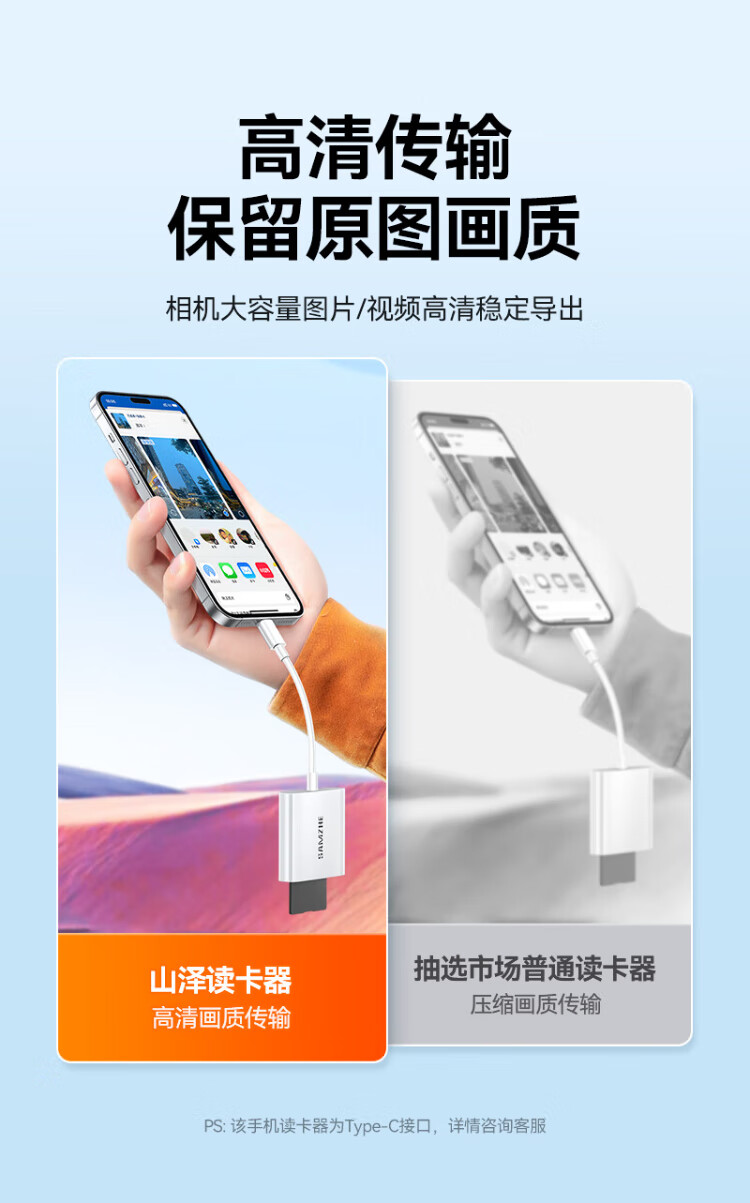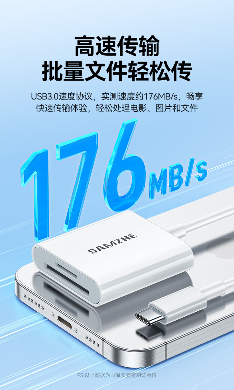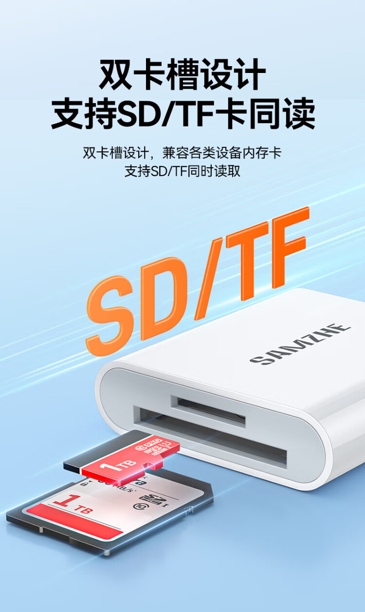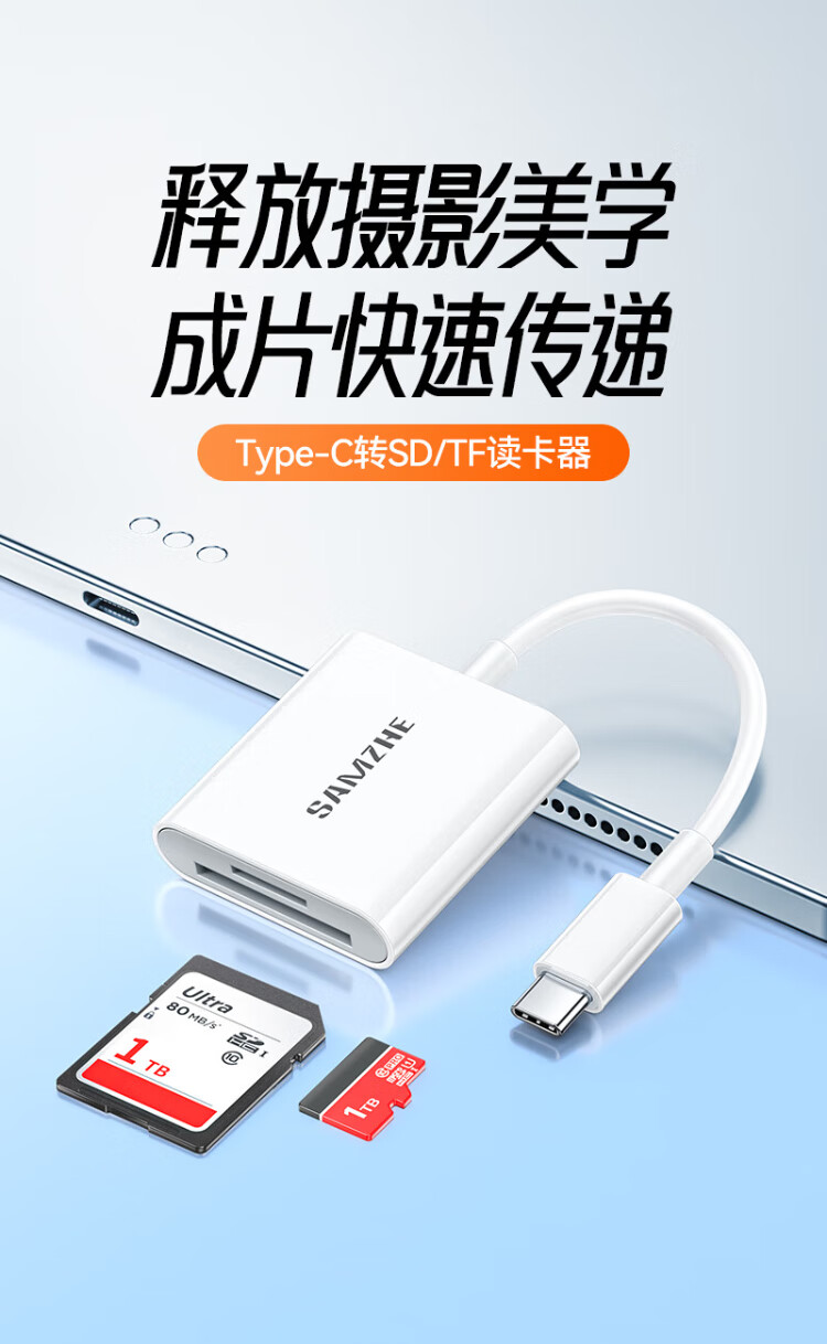 Shanze Type-C3.0 high-speed card reader is suitable for Apple 17/16/15/iPad mobile phones SD/TF and is compatible with UHS-I/II card camera monitoring driving recorder memory card