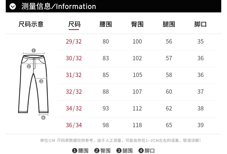 USA(inch) 28-30 30-32 32-34 34-38 38-42