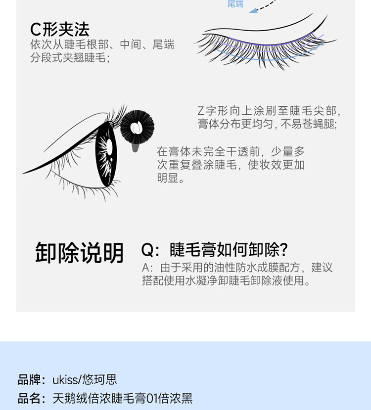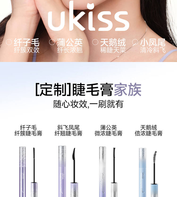 Ukiss eyelash primer + velvet mascara combo set, waterproof, sweat-proof and smudge-proof, birthday gift