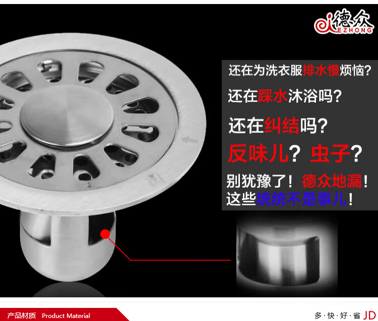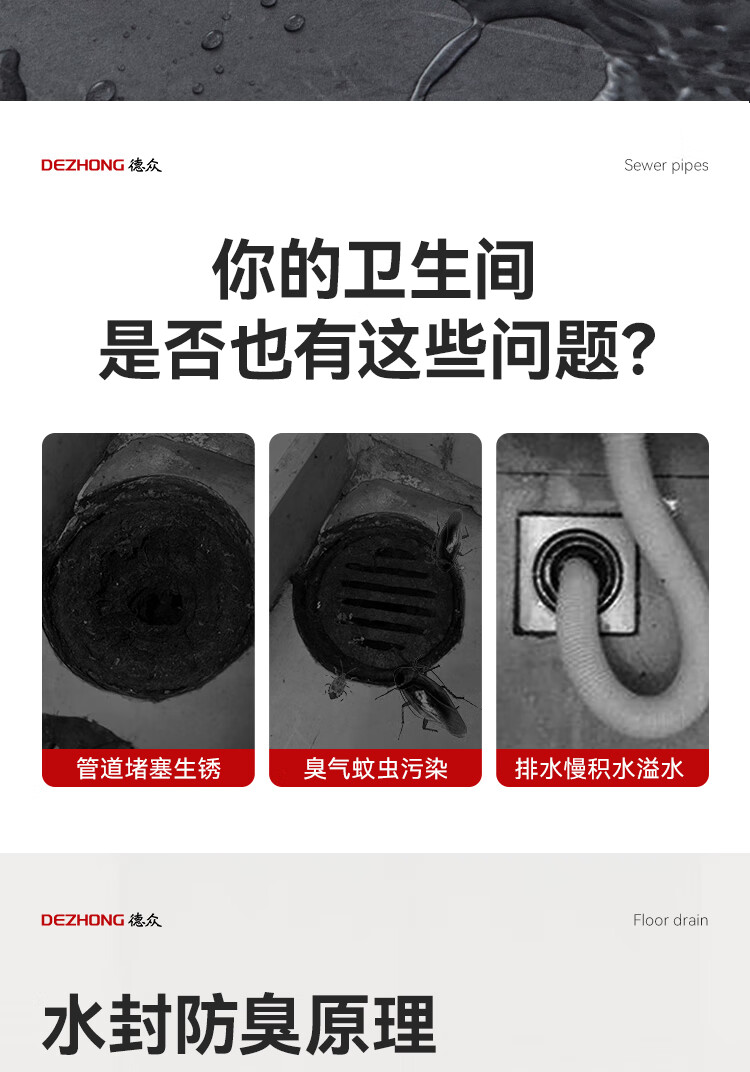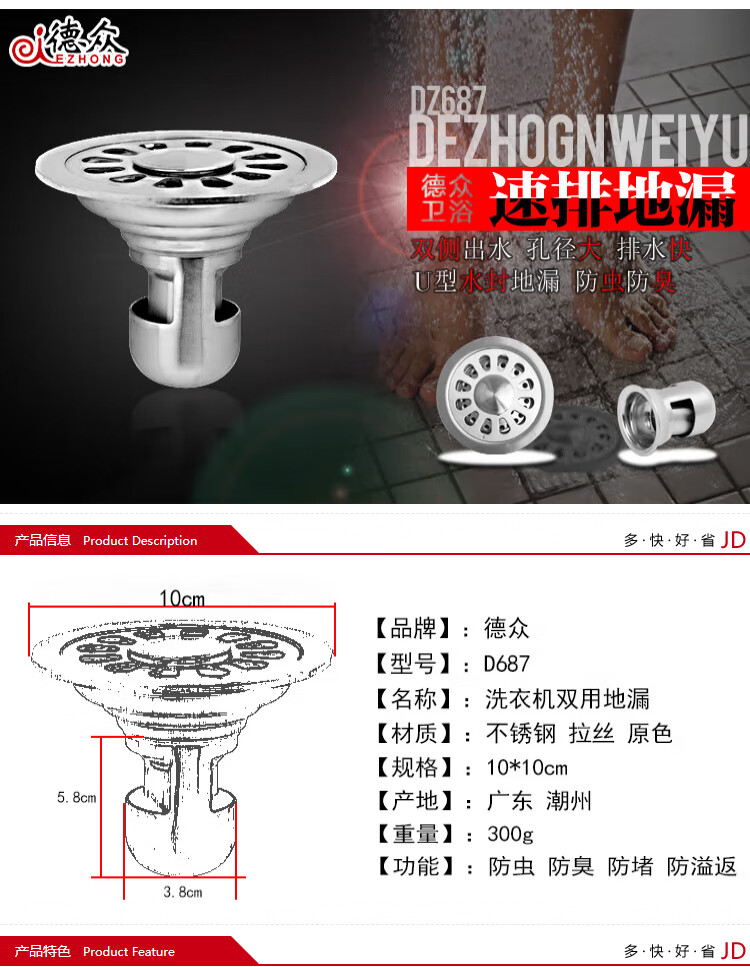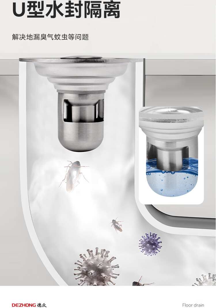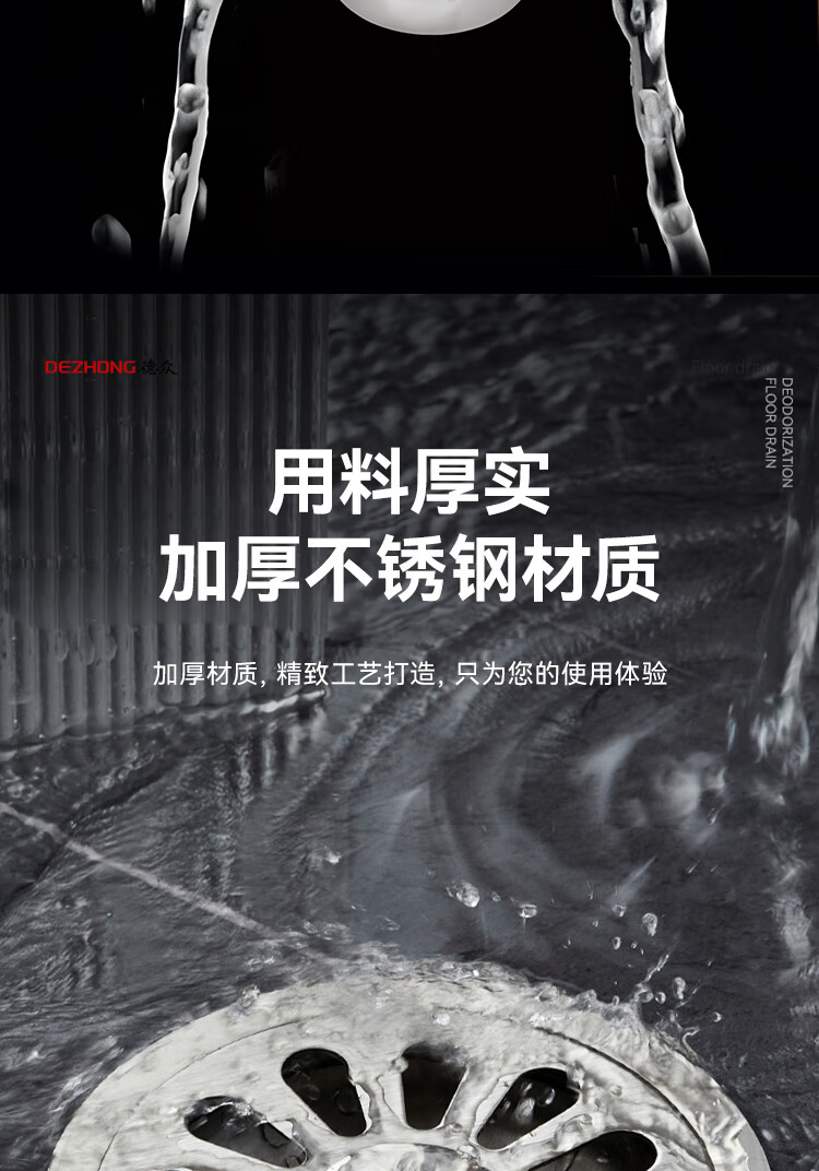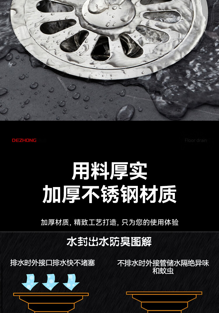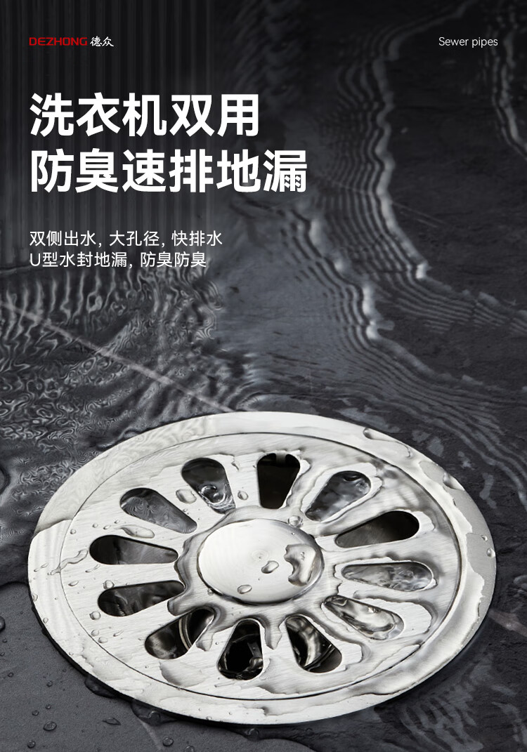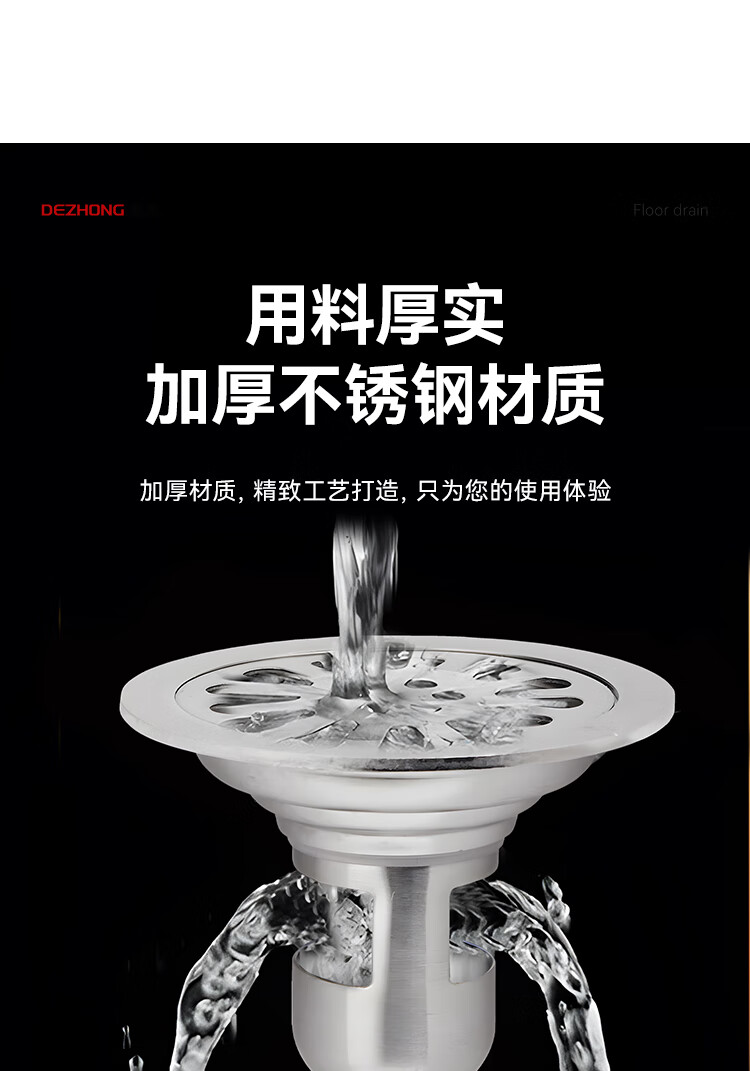 Dezhong round floor drain bathroom anti-odor floor drain large-displacement bathroom shower anti-odor floor drain balcony universal thickened 687