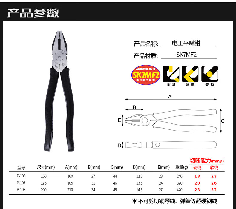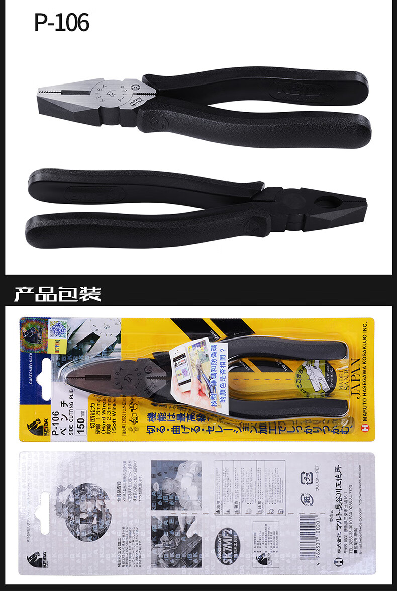KEIBA Continental Japanese original imported electrician's pliers Japanese vise P-106 6-inch flat nose pliers (do not cut steel wires)