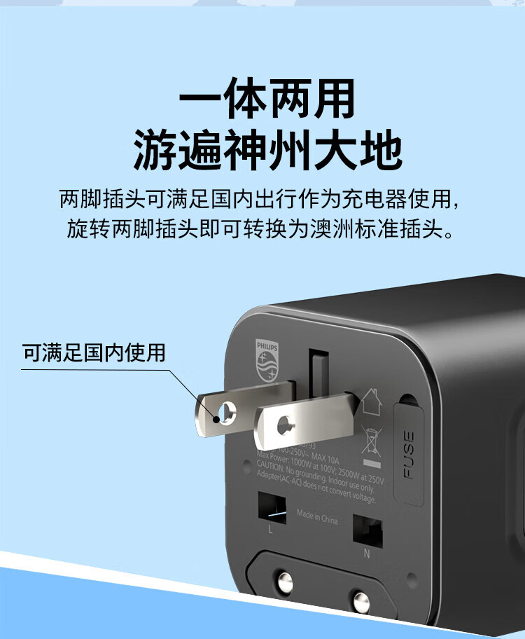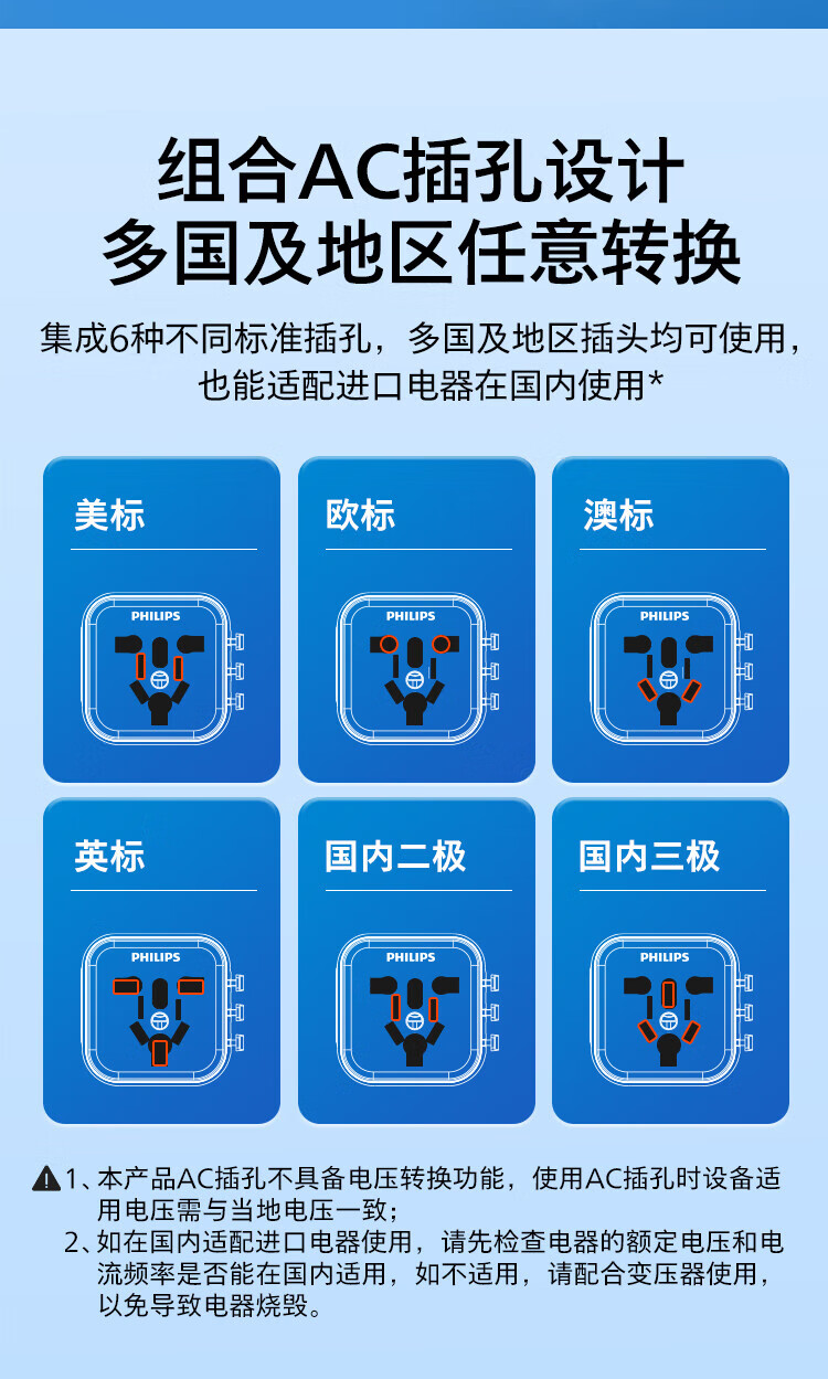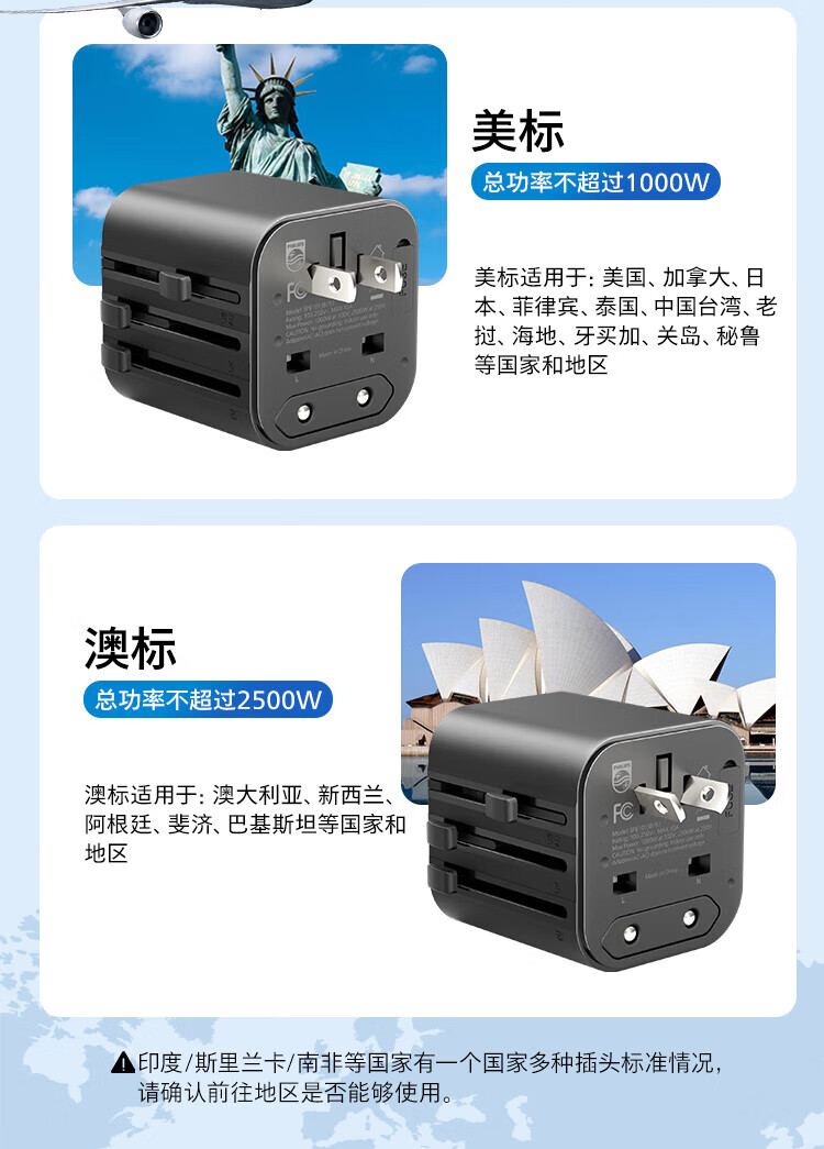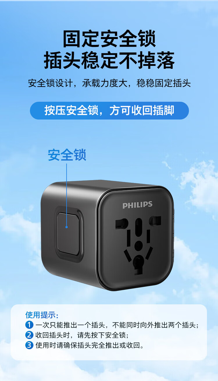 Philips (PHILIPS) overseas conversion plug/multi-national universal international travel socket converter/British standard European standard American standard Australian standard Japan and Singapore applicable 1013B black