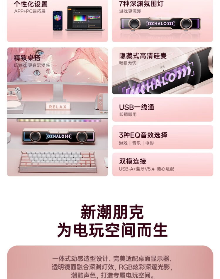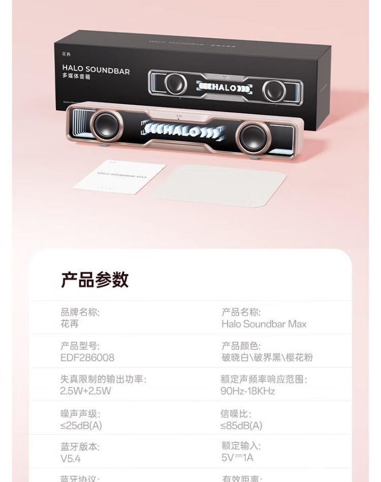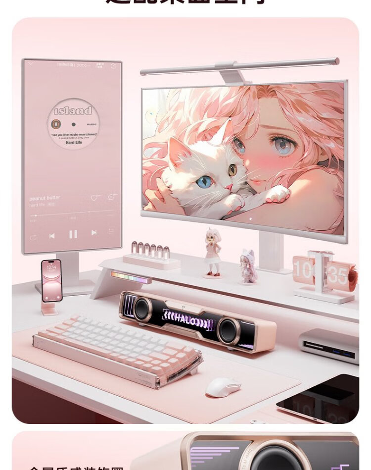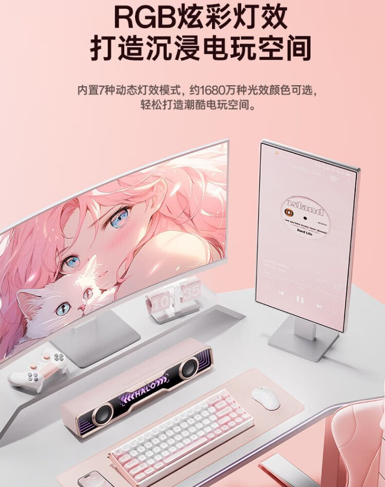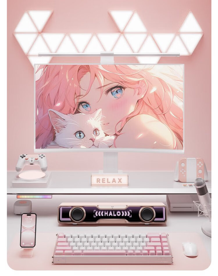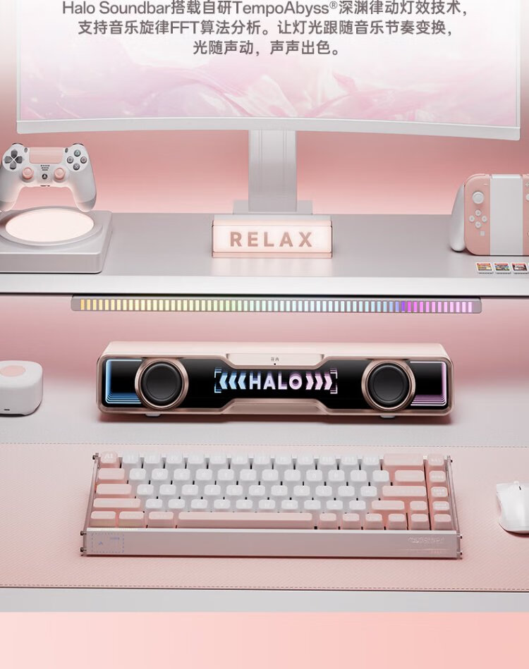 Edifier Halo SoundBar Desktop Audio Speaker Bluetooth 5.4 High Fidelity Desktop Computer Game Audio Long Speaker Exclusive Customized Version Sakura Pink