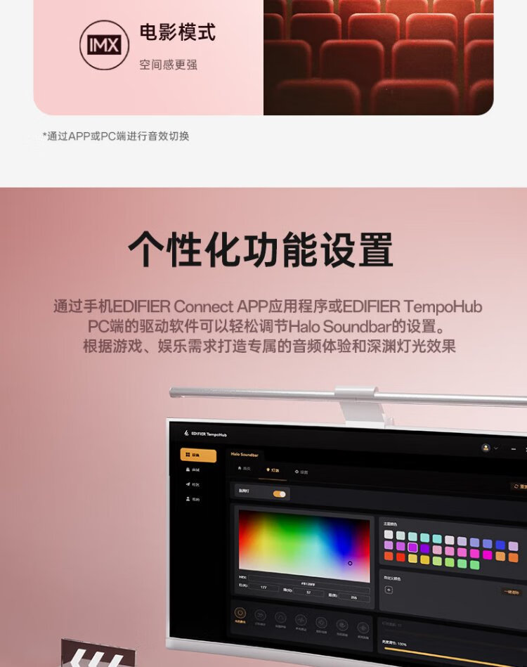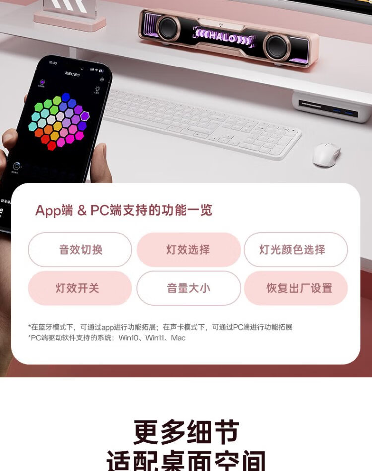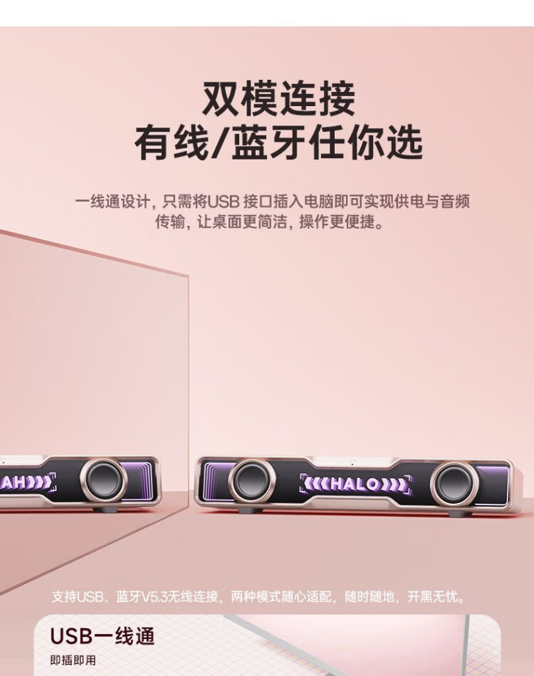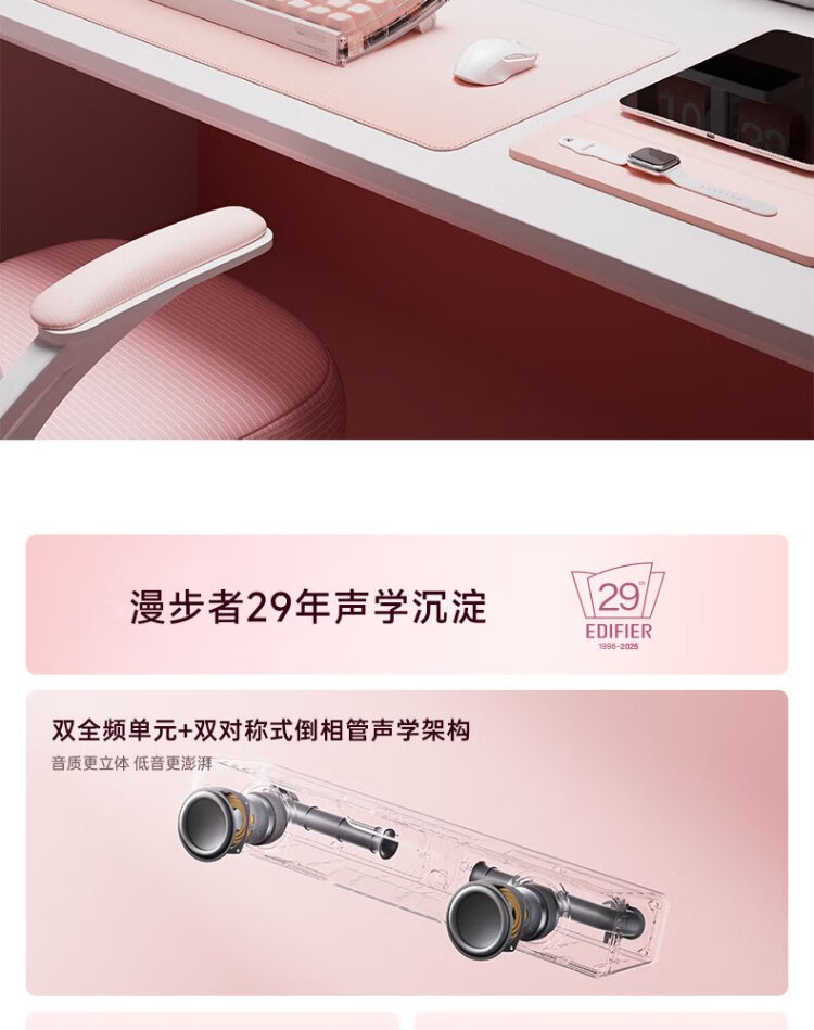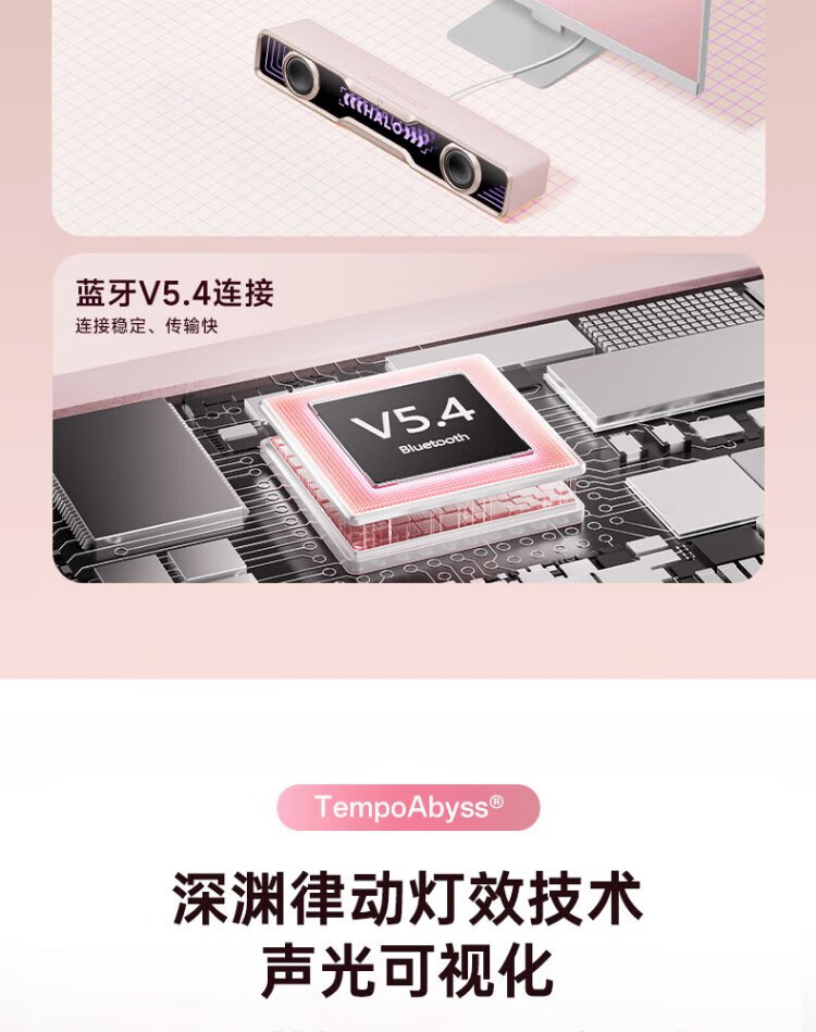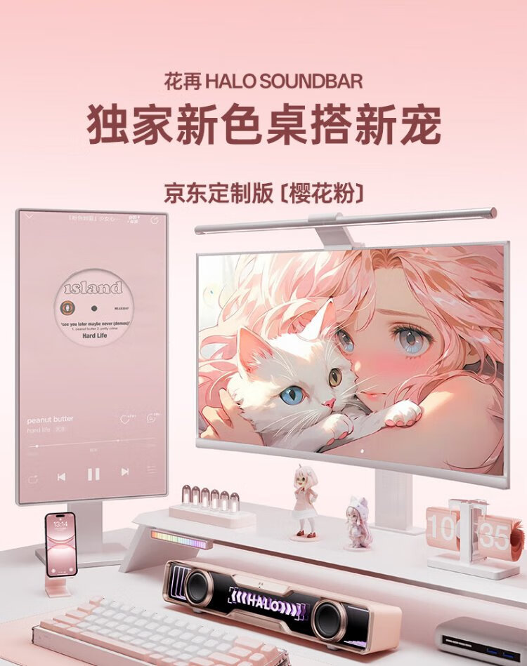 Edifier Halo SoundBar Desktop Audio Speaker Bluetooth 5.4 High Fidelity Desktop Computer Game Audio Long Speaker Exclusive Customized Version Sakura Pink