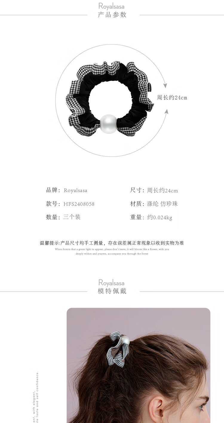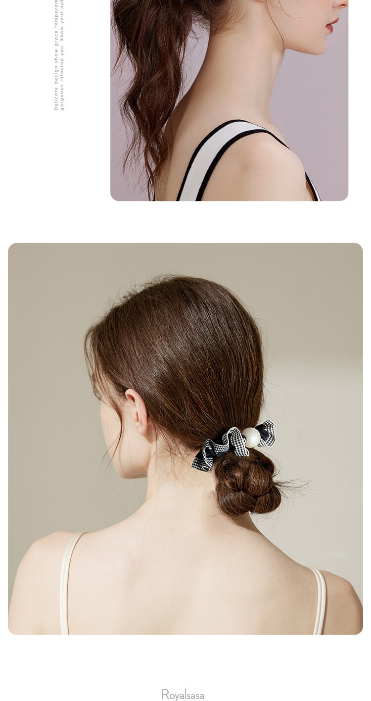 Royal sasa Royal salsa retro plaid lace imitation pearl small intestine hair ring temperament ponytail head rope ball hair rope leather case