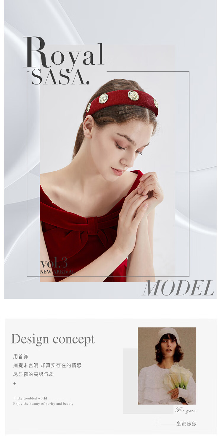 Royal sasa Royal salsa New Year Chinese red cloth wide style hairband does not jam the head, comfortable temperament hairpin zodiac year hair accessories