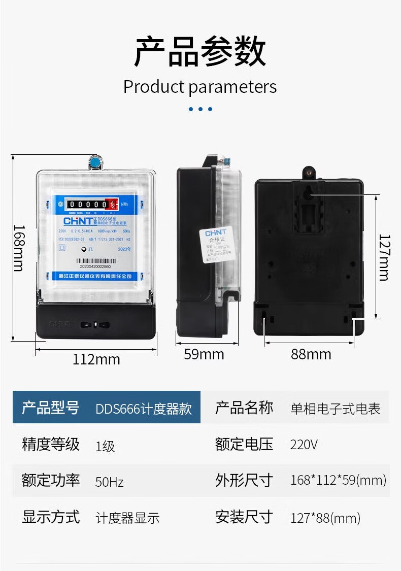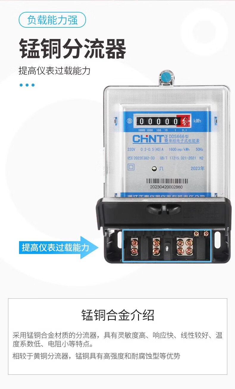 Chint (CHNT) household electric meter DDS666 220V 15-60A rental house electric meter meter type high-precision electric meter electronic household electric meter