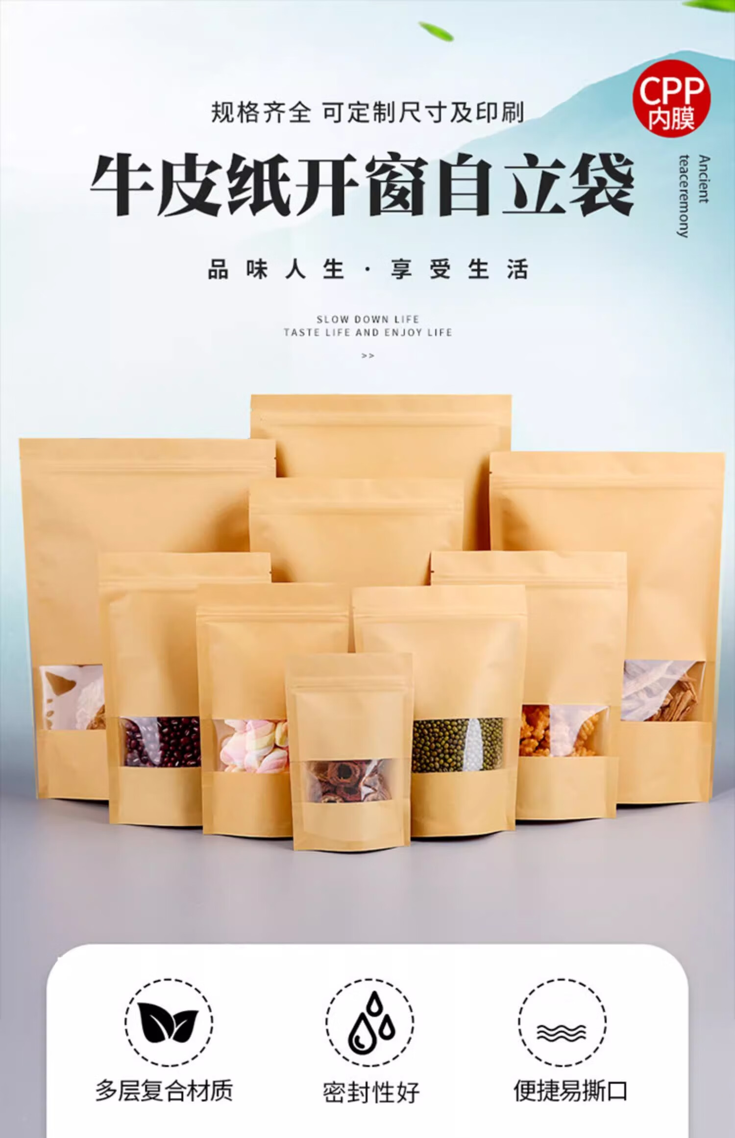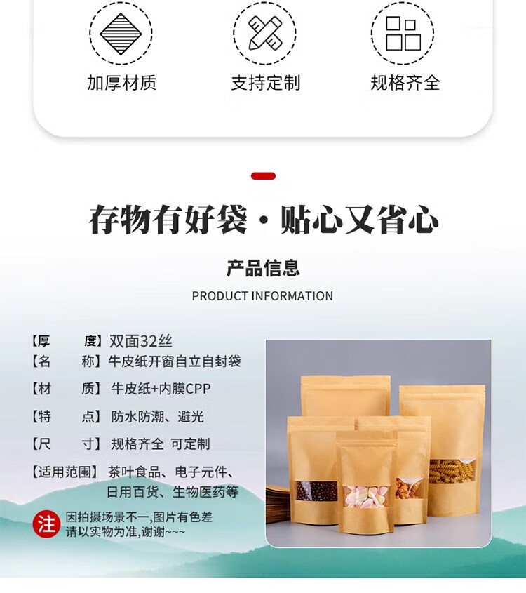 Masifu disposable sealed bag tea bag dried fruit snack ziplock bag kraft paper bag 20*30cm (30 pieces/bag)