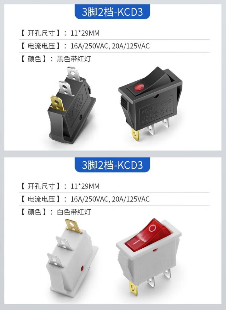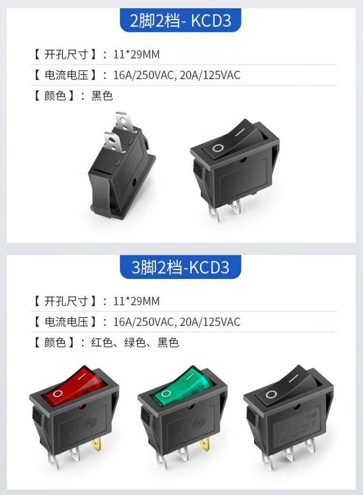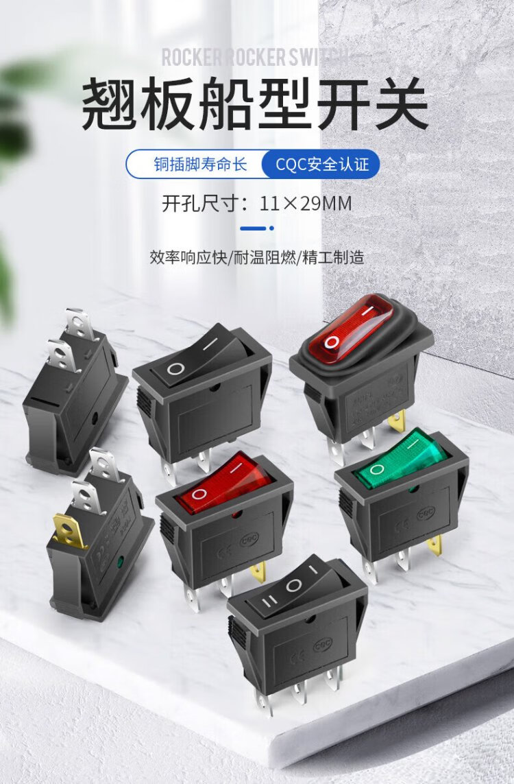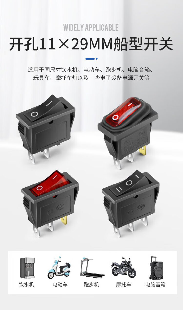 Huijun KCD3 boat switch opening 11*29mm rocker switch electrical power button 3 feet 2 levels red