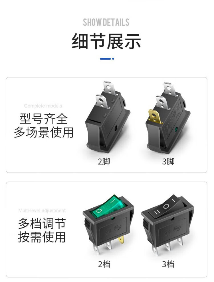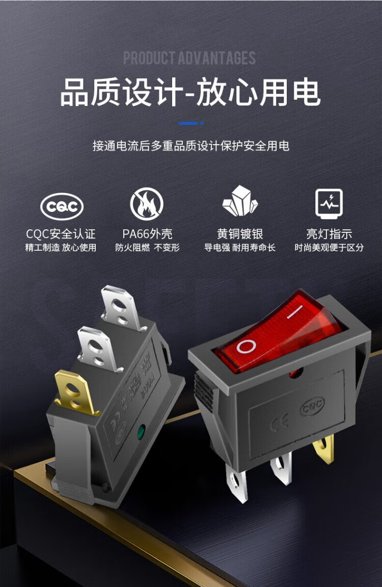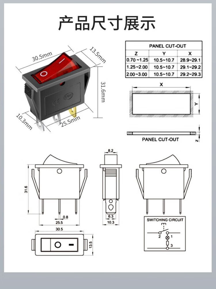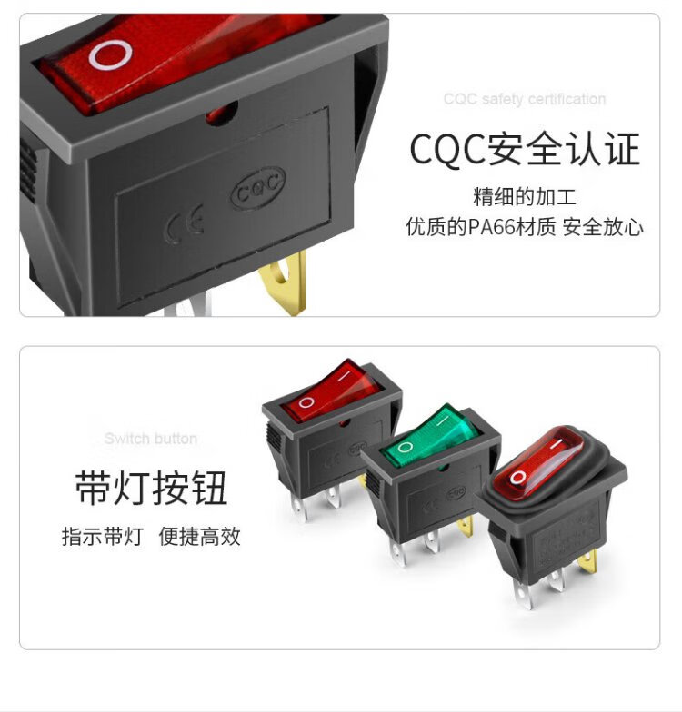 Huijun KCD3 boat switch opening 11*29mm rocker switch electrical power button 3 feet 2 levels red