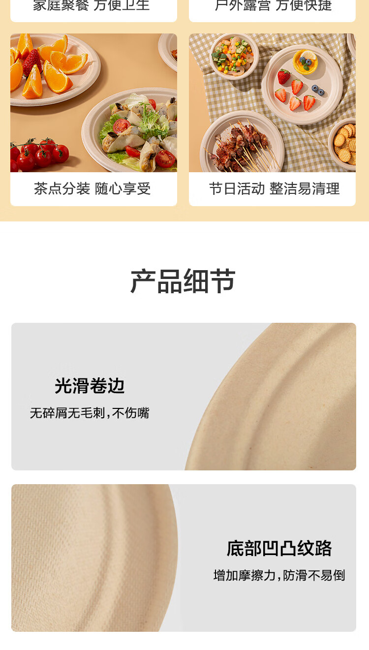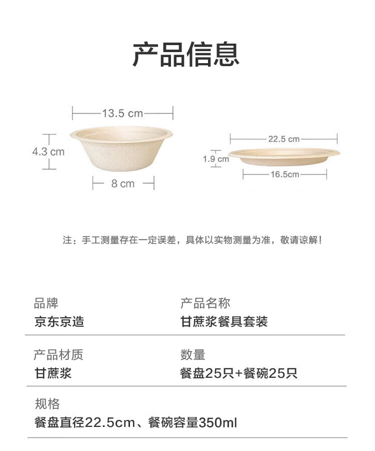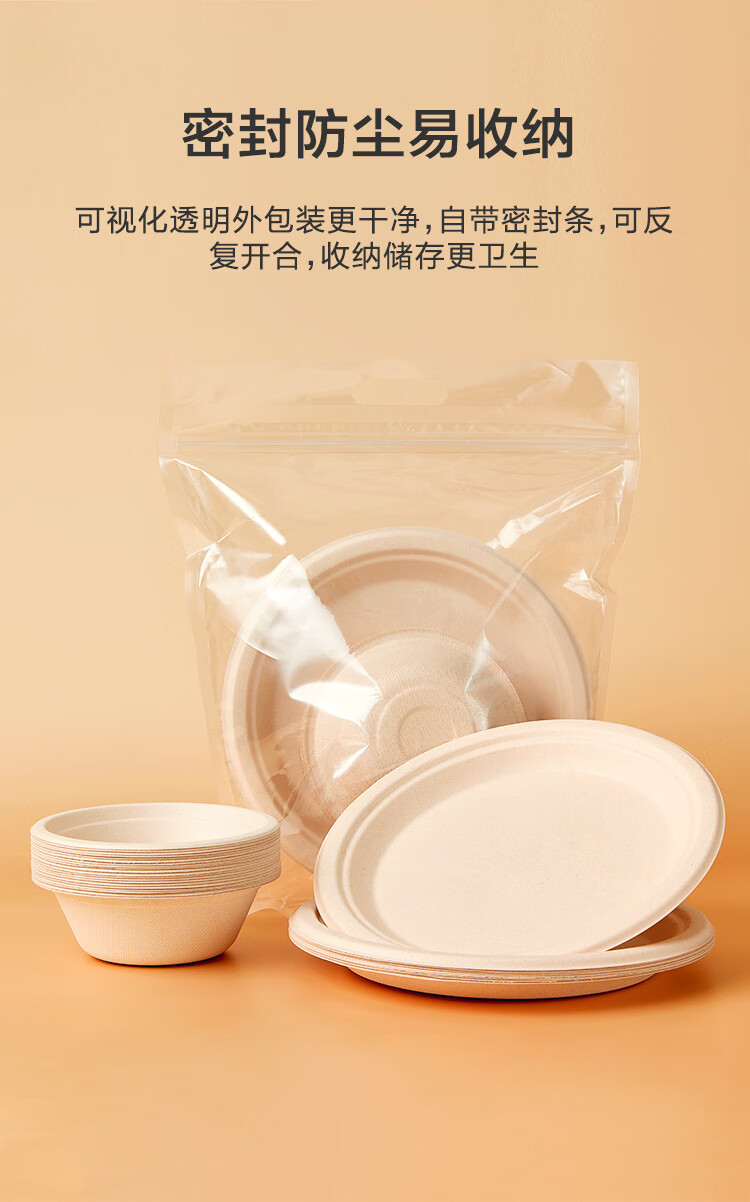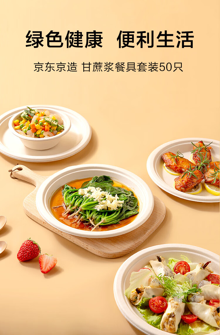 Made in Tokyo, disposable plates, bowls, plates and tableware, food-grade biodegradable barbecue camping tableware set, 50 pieces