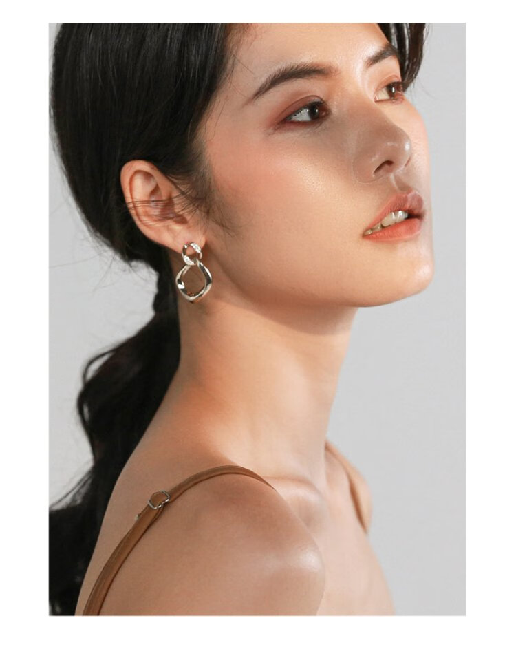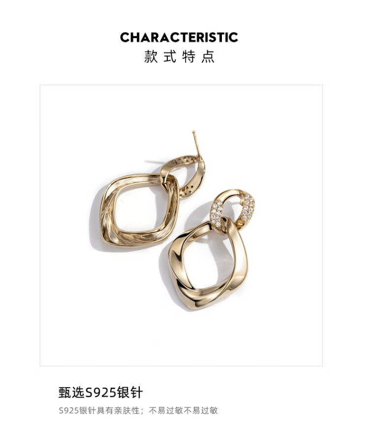 Qlady Geometric Earrings Women's Fashion Temperament 925 Silver Needle Light Luxury Earrings Niche Design Birthday Gift for Girlfriend
