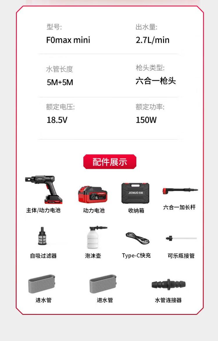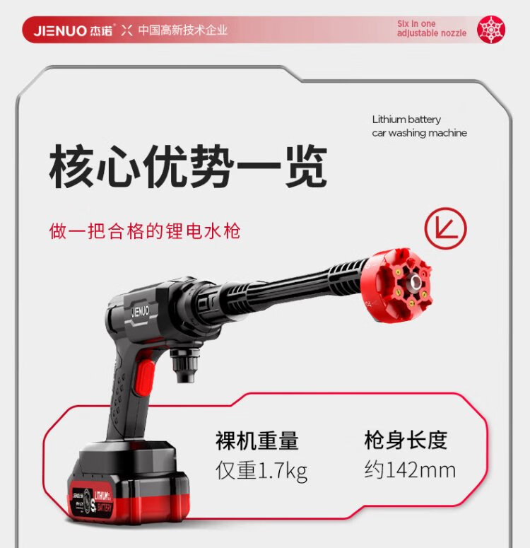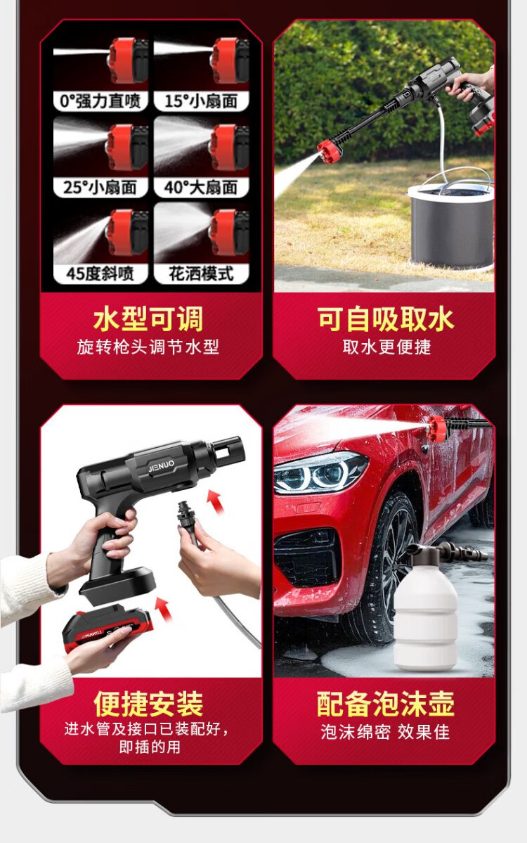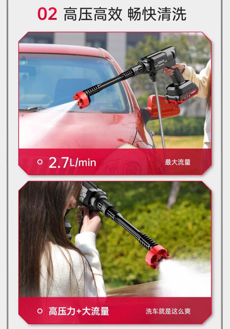 Geno wireless car washing machine high-pressure water gun household high-power booster pump super pressure cleaning artifact dual lithium battery pack