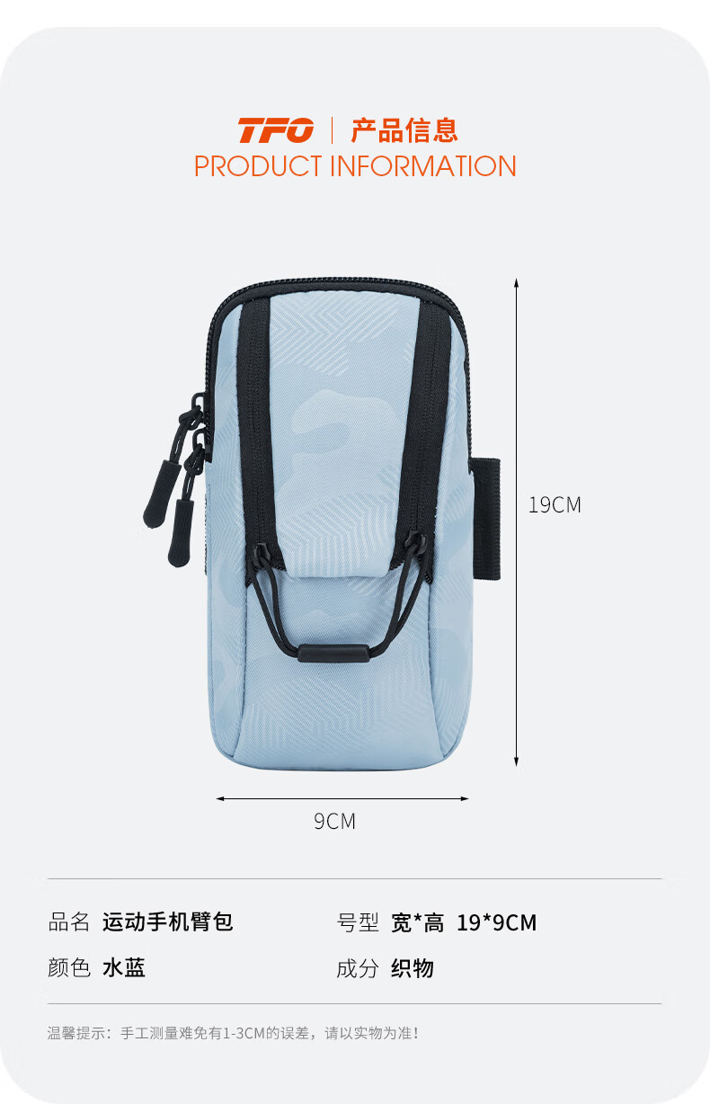 TFO cross-country sports arm bag multi-pocket outdoor running bag arm bag mobile phone bag 9402525 aqua blue