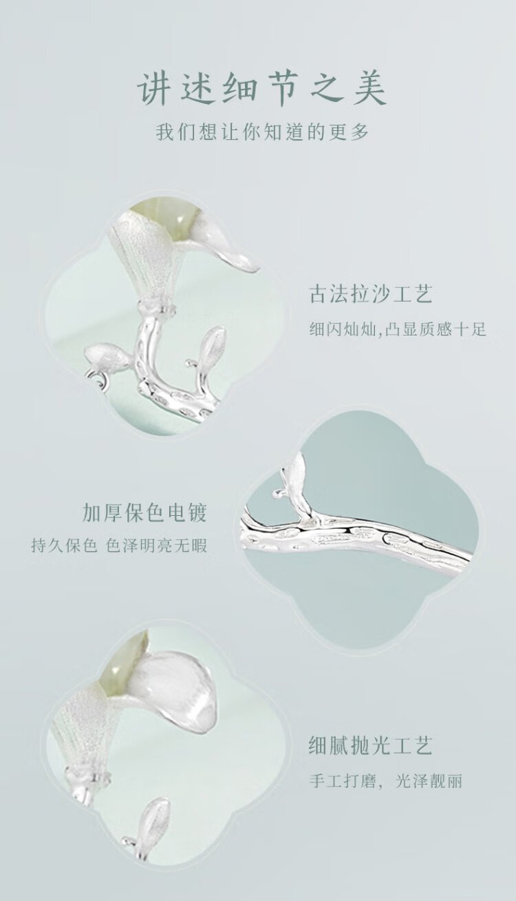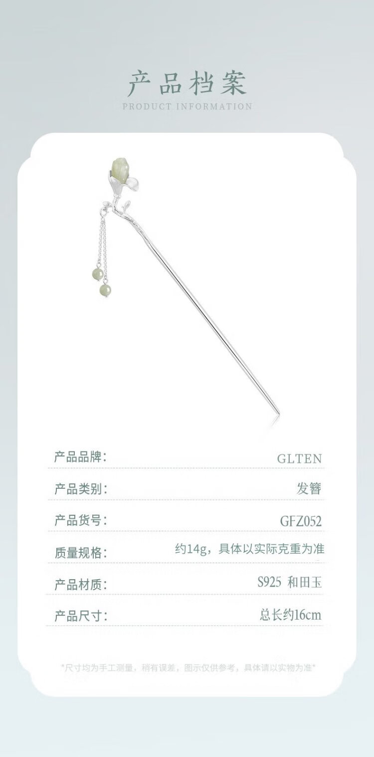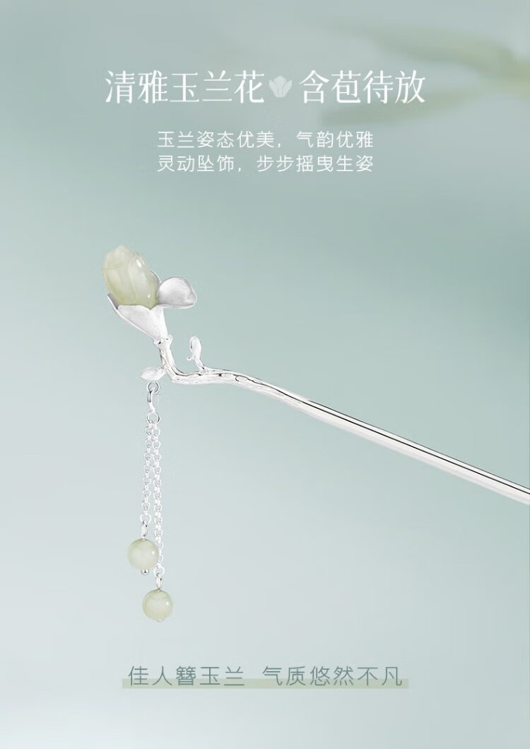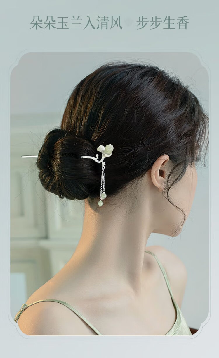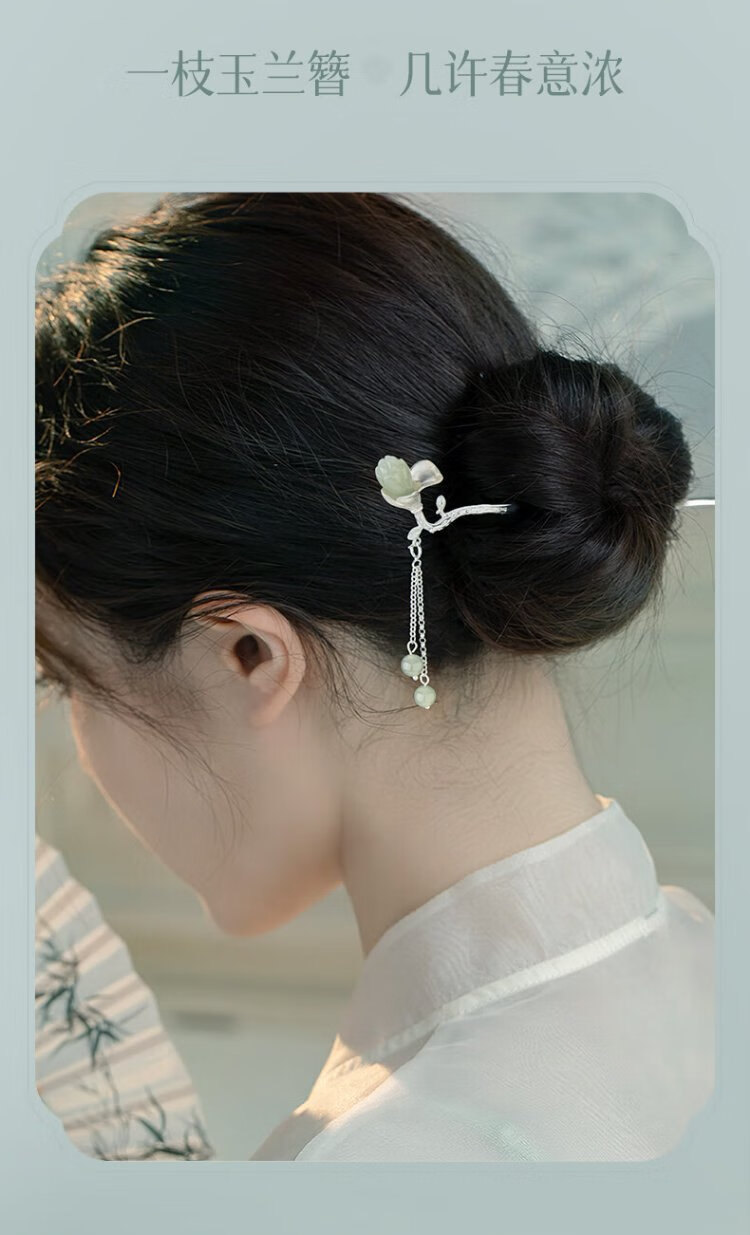 GLTEN new Chinese style magnolia and field jade silver hairpins for women, ancient style hair accessories, birthday gifts for girlfriends and wives