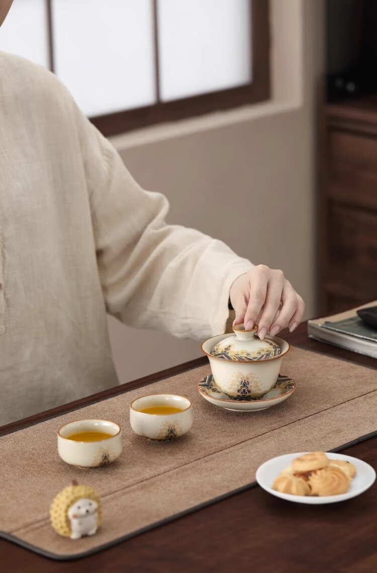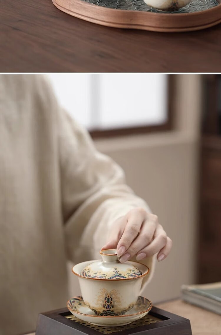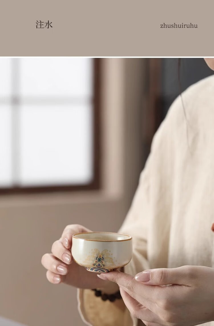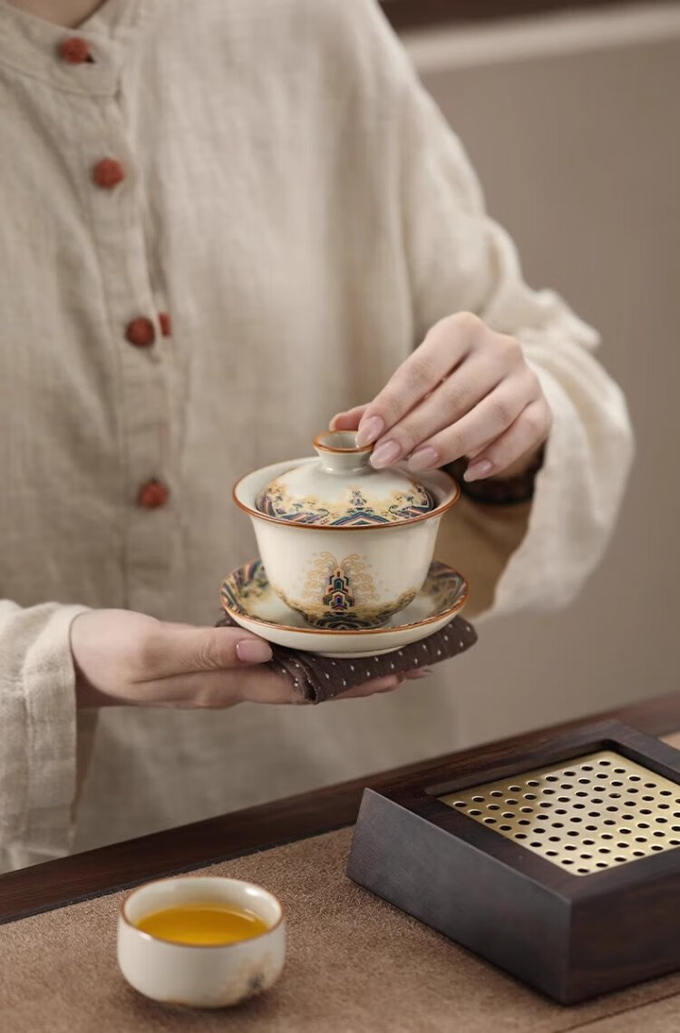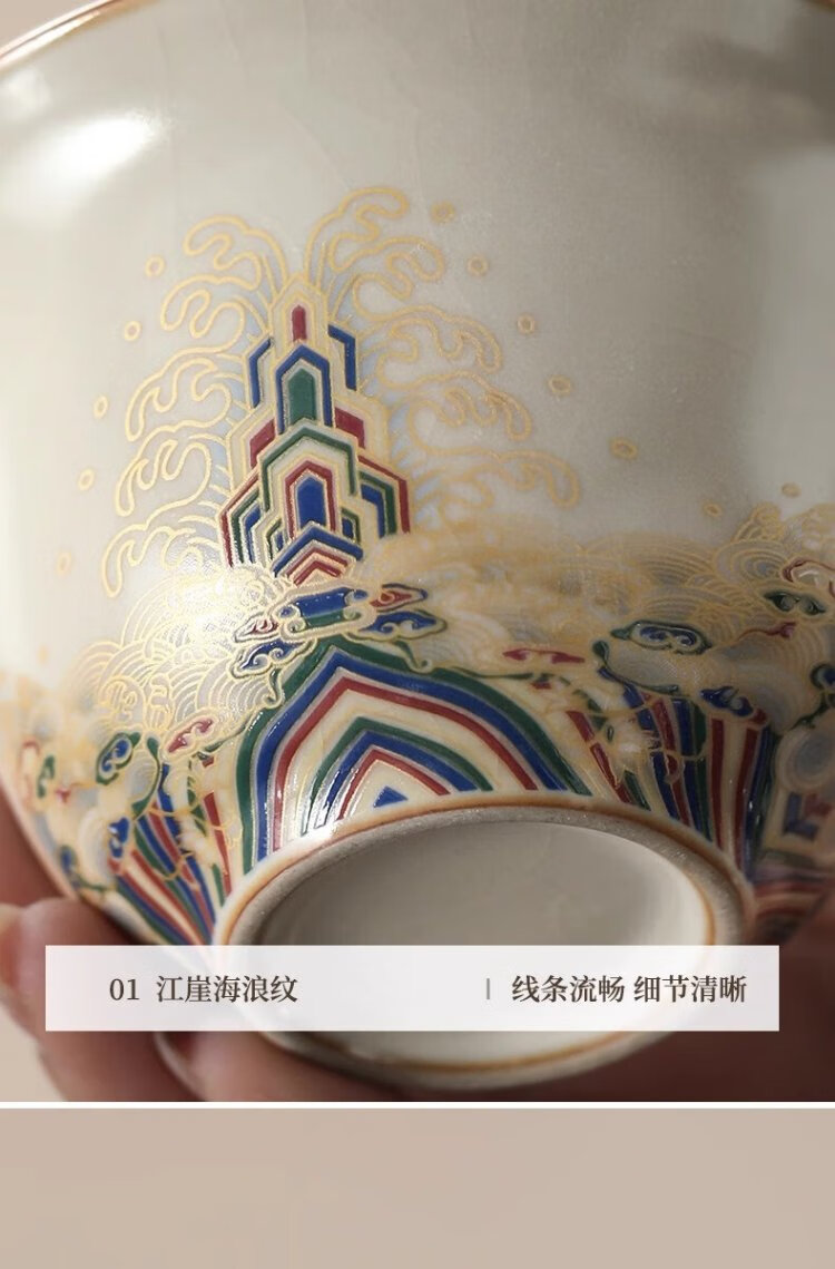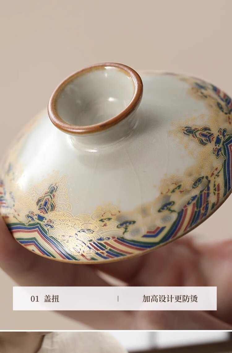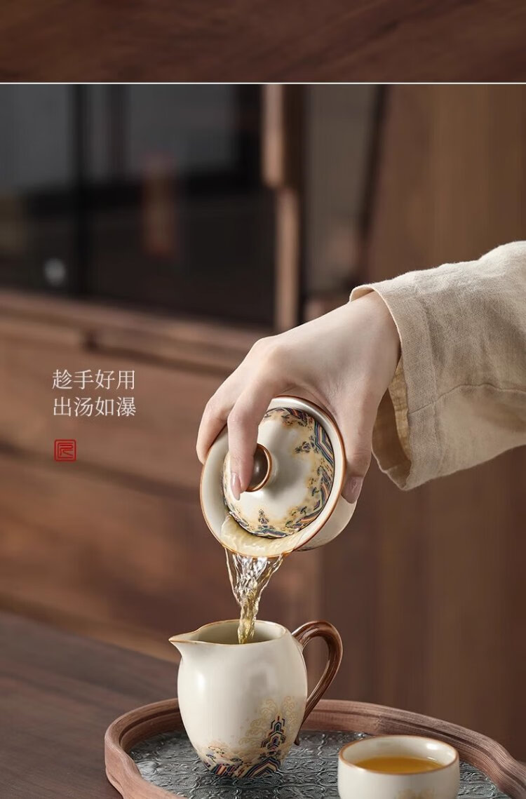 Shangyanfang Ru Kiln Sancai bowl teacup high-end ceramic fair cup with tea leak filter three-piece Kung Fu tea set for one person