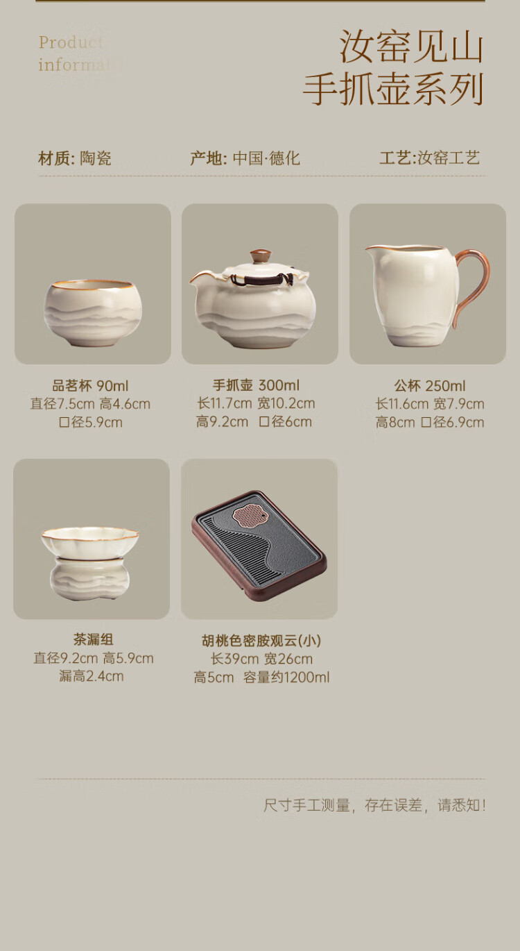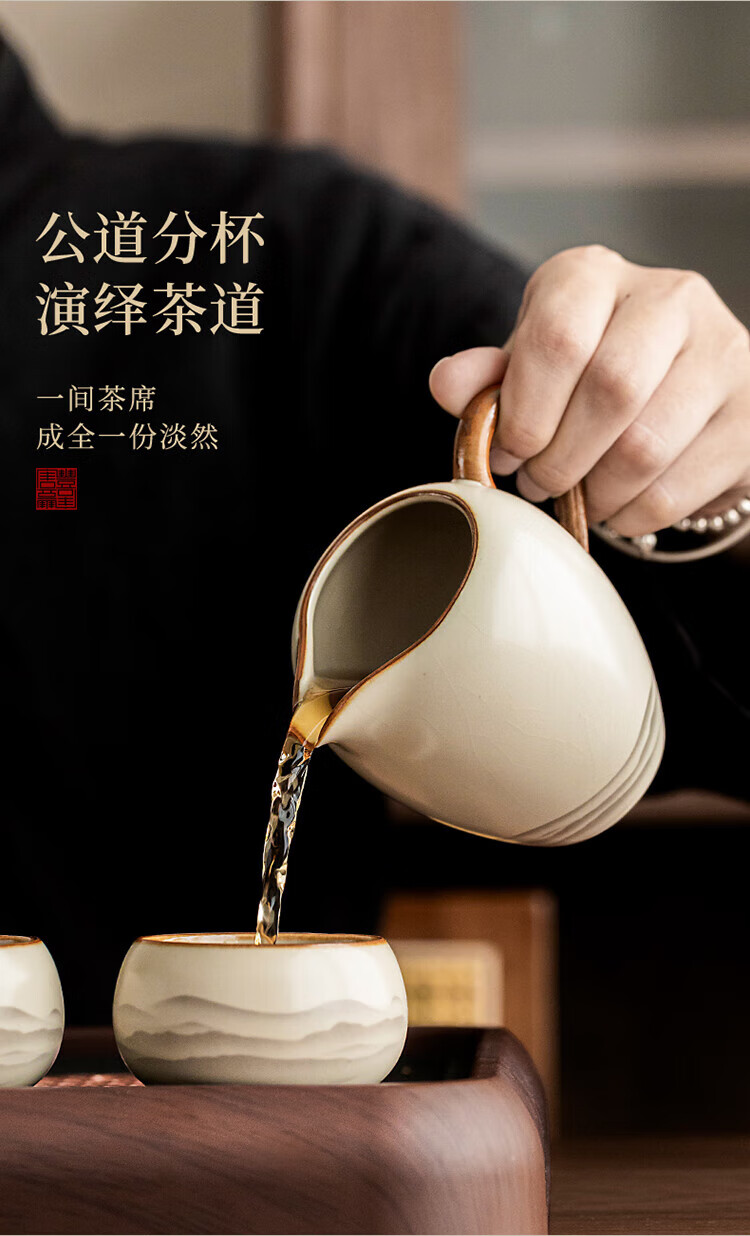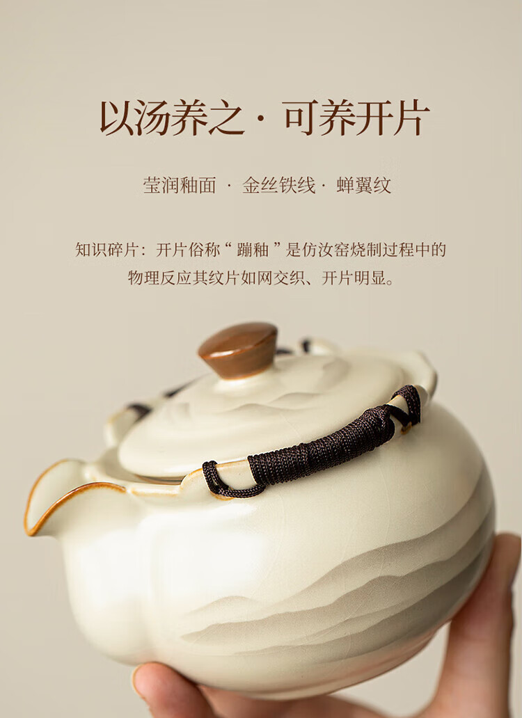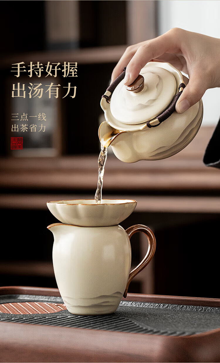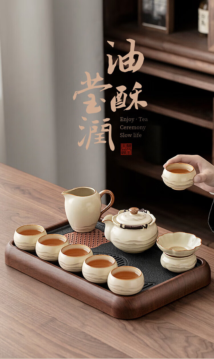 Tangfeng Ru Kiln tea set complete set with tea tray Kung Fu tea set Chinese style household ceramic teapot lid bowl tea cup set