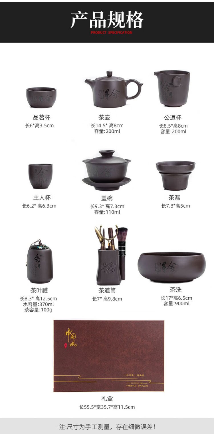 Xiangye Zisha Kung Fu tea set home simple reception Chinese teapot tea cup tea ceremony accessories gift box